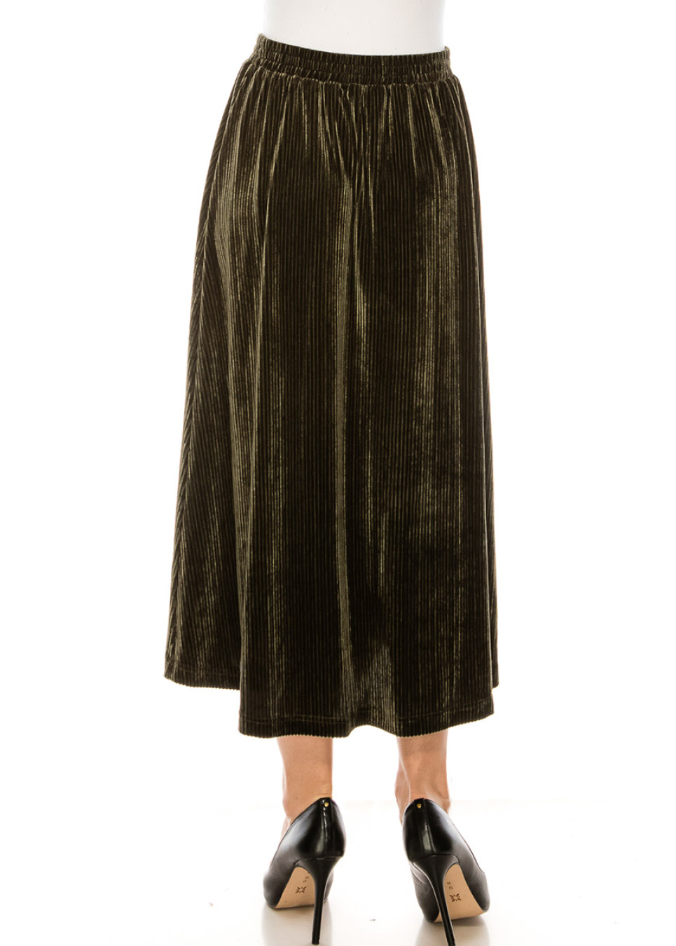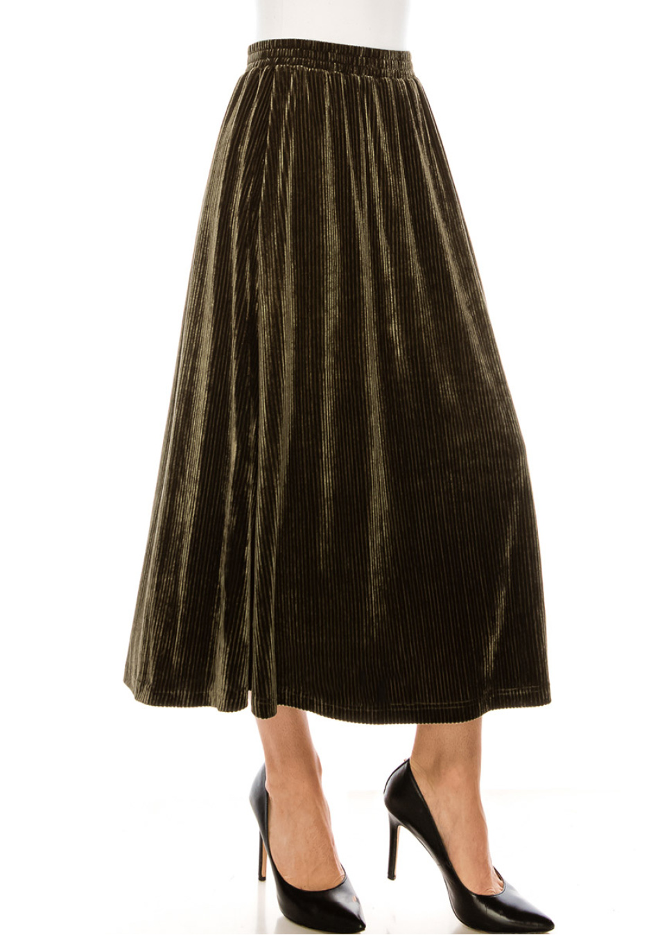 Flared hem velvet maxi skirt in olive