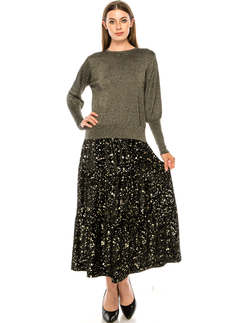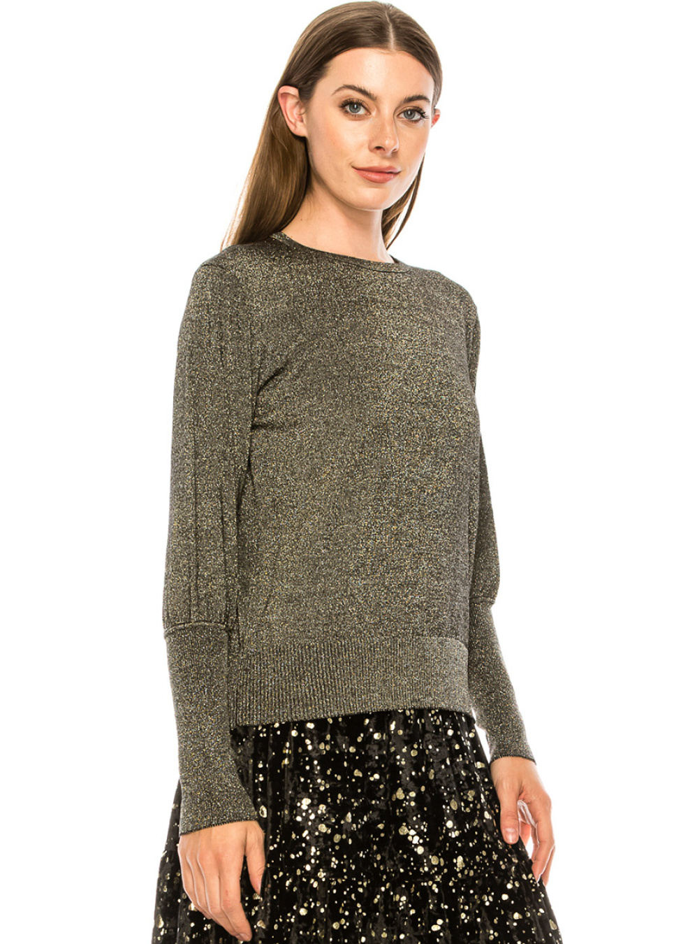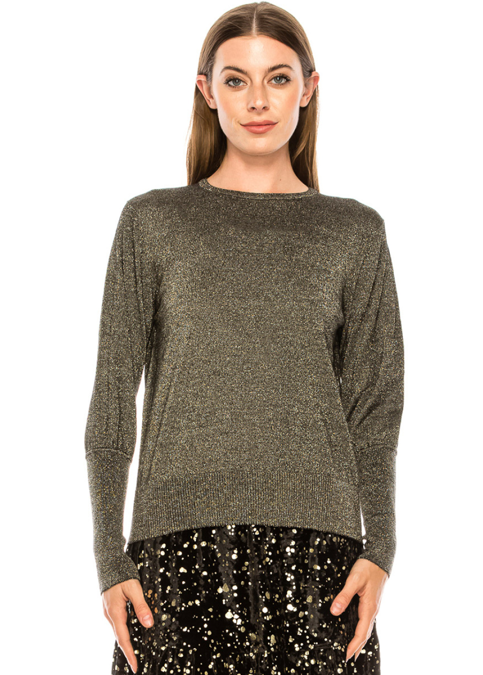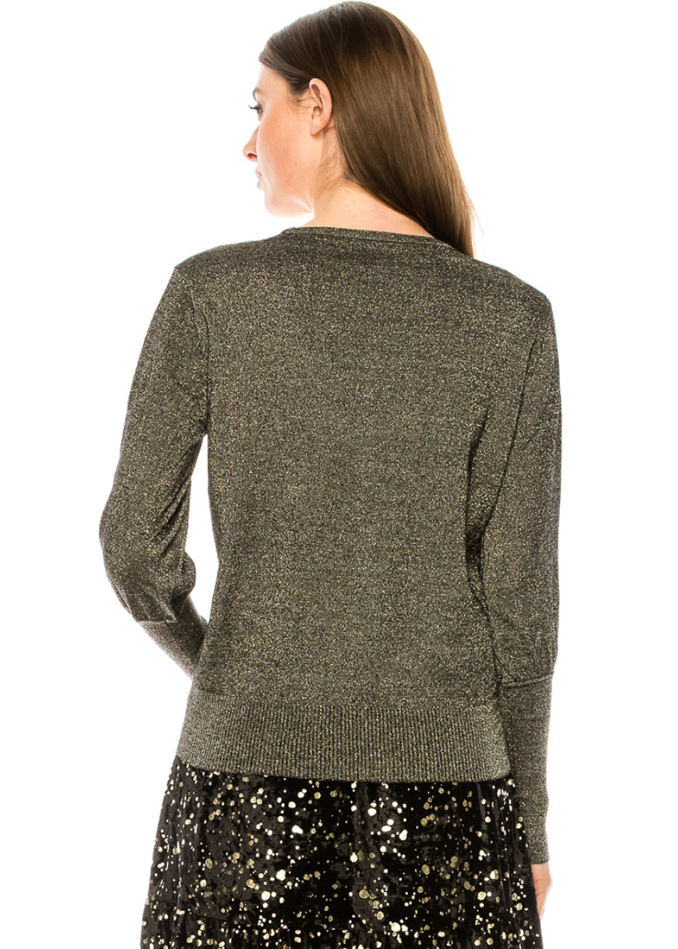 This timeless sweater will look great with everything you pair it with. High cuffs and gold lurex provide a shimmering touch to the sophisticated silhouette.