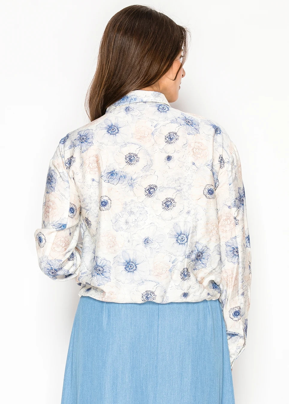 This is the type of blouse that makes getting dressed simple. The loose drape through the body feels comfortable all day, and the drawstring hem gathers the fabric just enough to keep the silhouette neat. The soft botanical print adds quiet elegance.