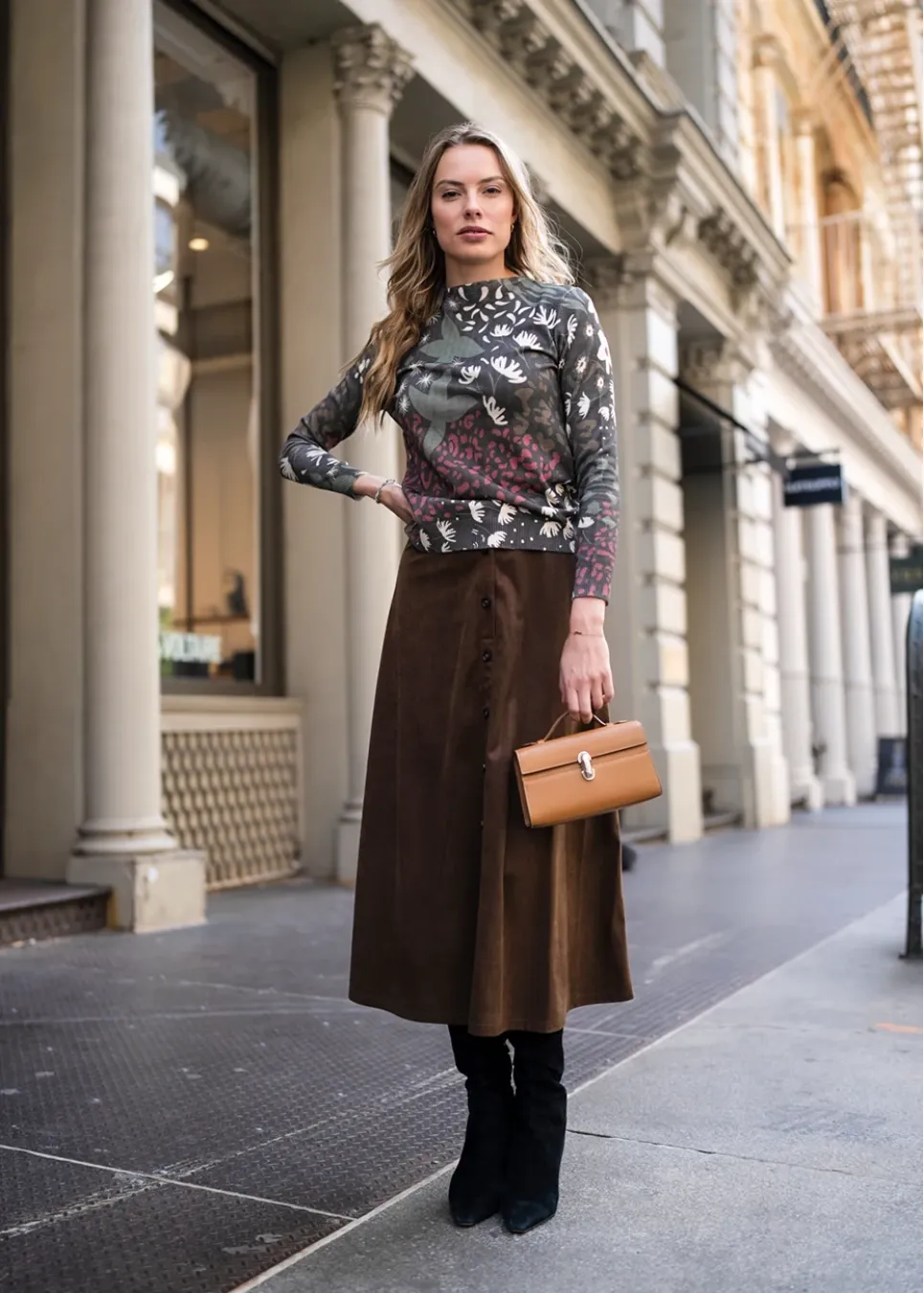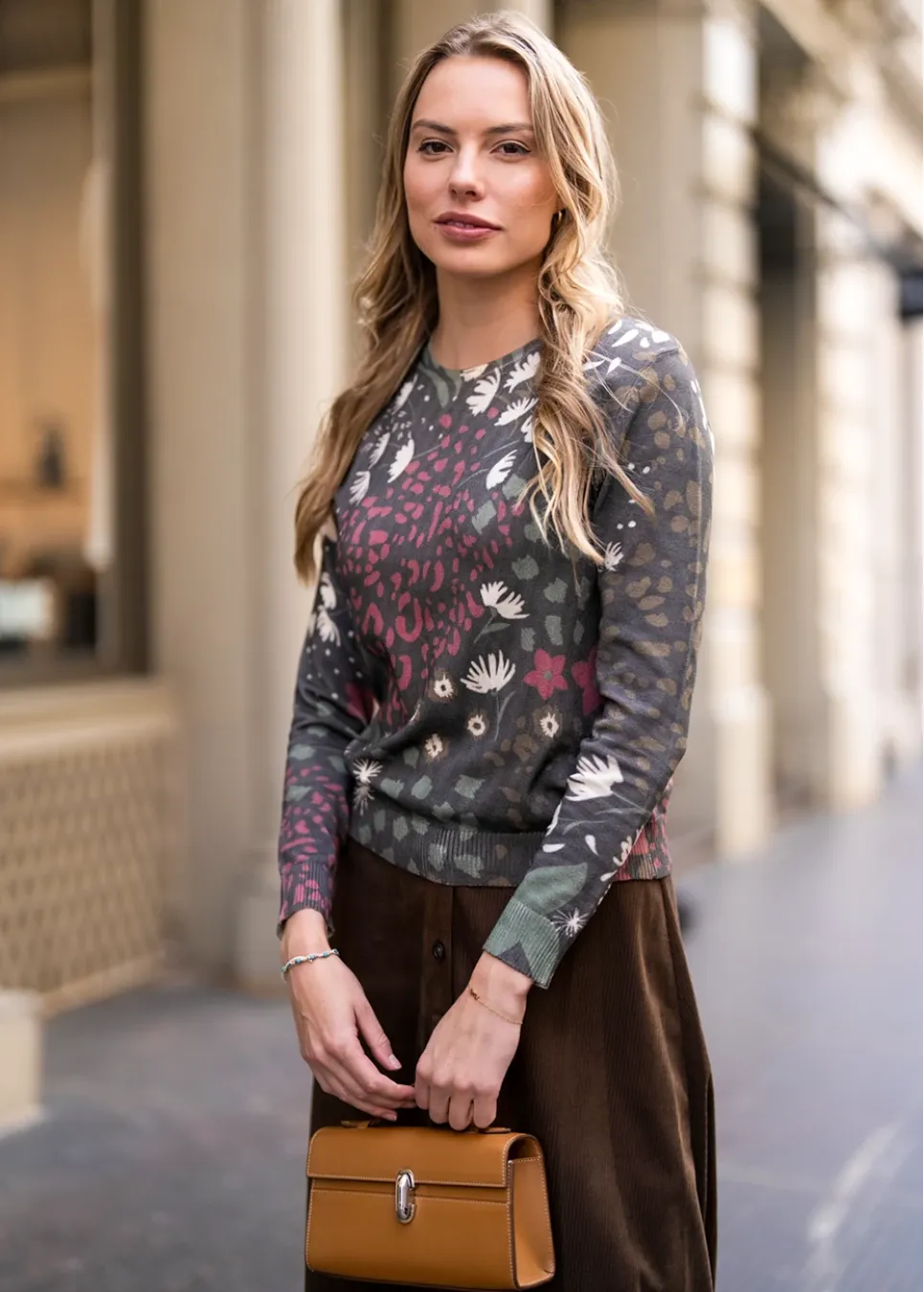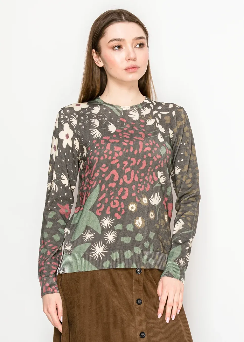 Like wrapping up in a fall garden. This cozy sweater is dotted with soft florals and earthy tones — just the right mix of warmth and color for crisp autumn days.