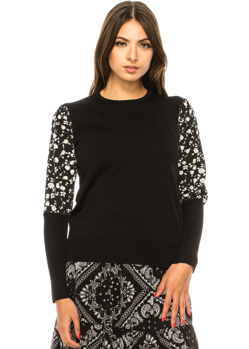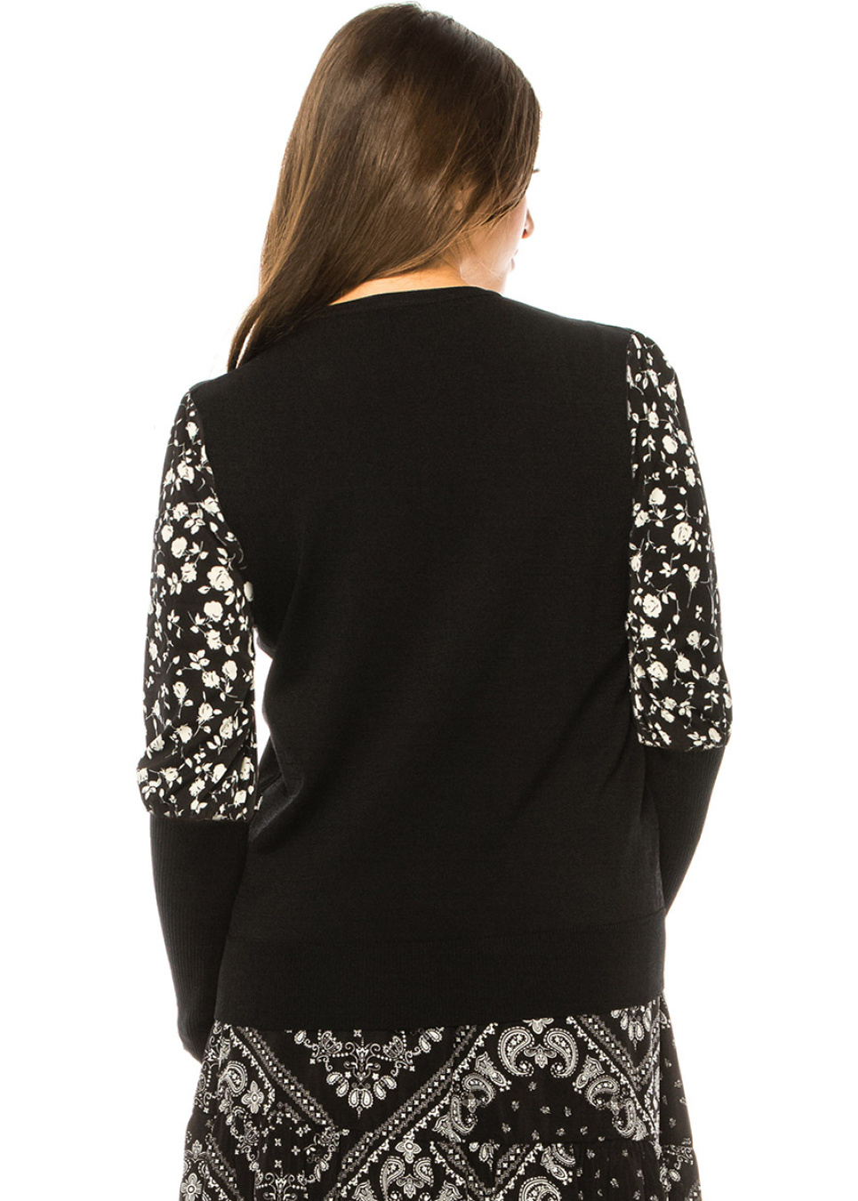 This black sweater is a true masterpiece, featuring a beautiful floral print on the sleeves that will make you stand out from the crowd. With its regular fit and soft, premium quality fabric, it promises all-day comfort and a flawless look.