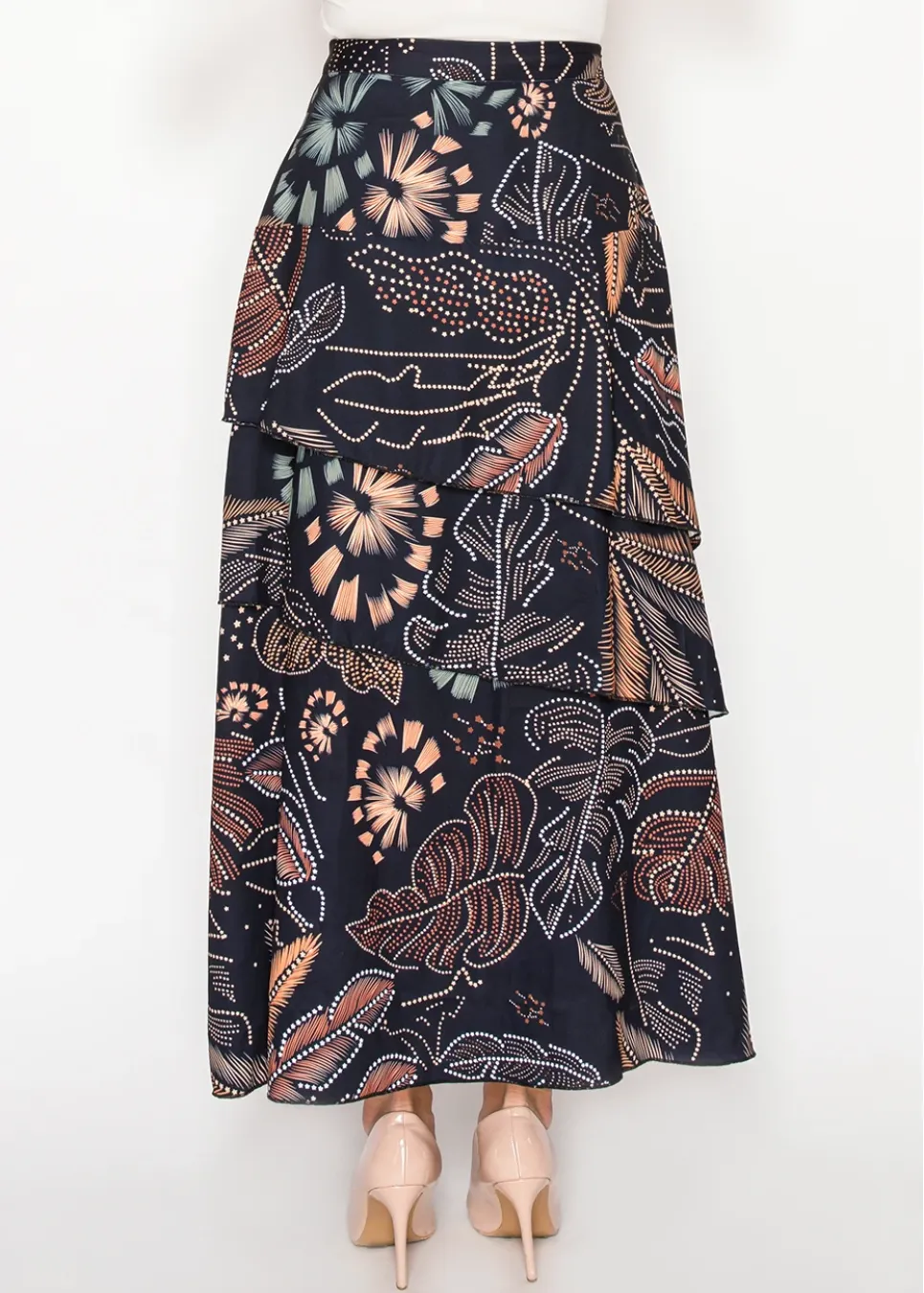 Floral tiered midi skirt in navy print