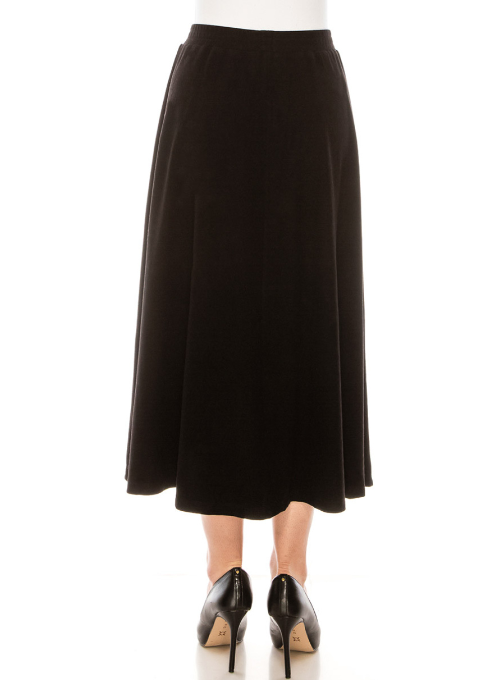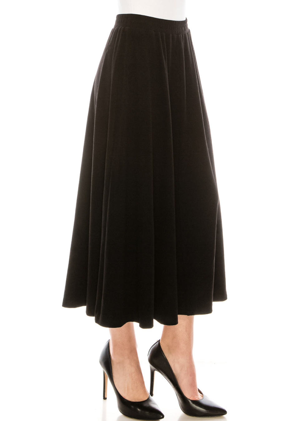 Gorgeous in every way! The swaying breadth and midi length playfully frame the knees and provide a balanced outline. The style is minimalist and contemporary. The skirt does not need a zipper because of the elastic waistband, which draws attention to the waist like a belt but is far more comfortable to wear.