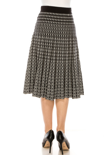This classy midi skirt made of high-quality material features a pleated structure and geometric pattern. Pleats are nicely pressed, complementing any figure type. Due to its warmth and relaxed, comfy fit, the skirt is the perfect companion for long autumn walks.