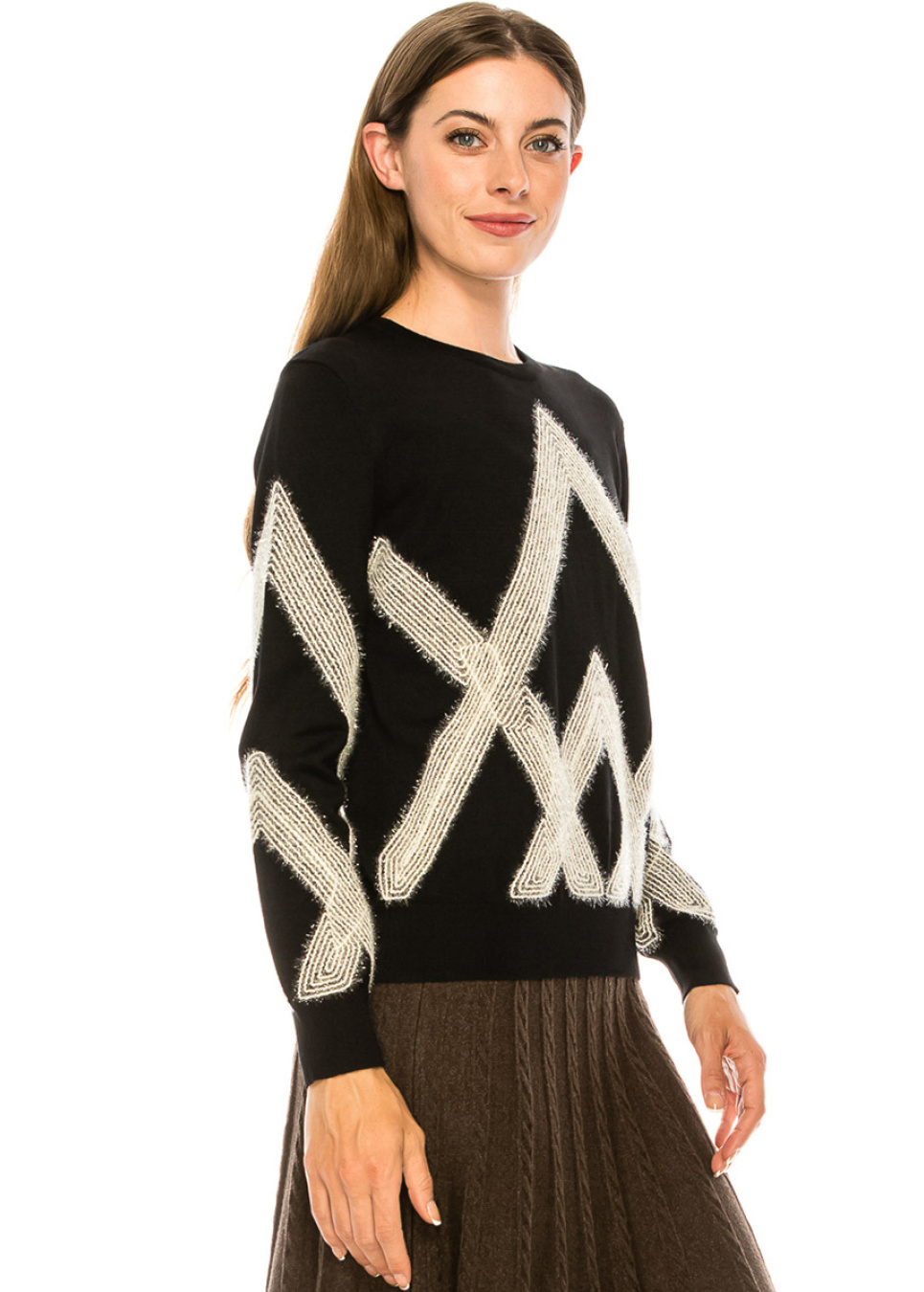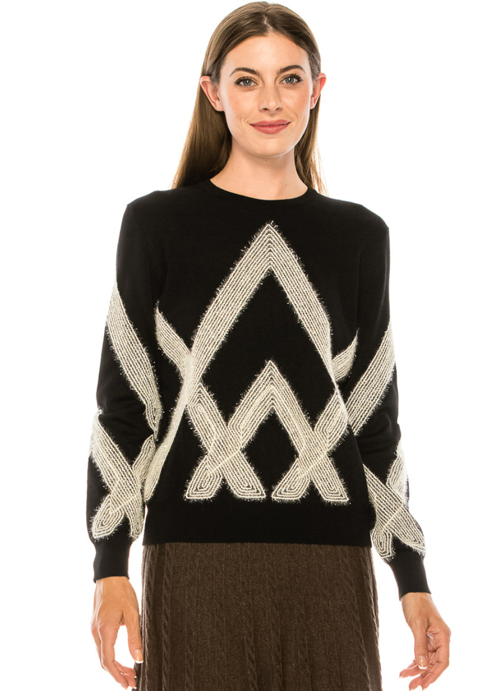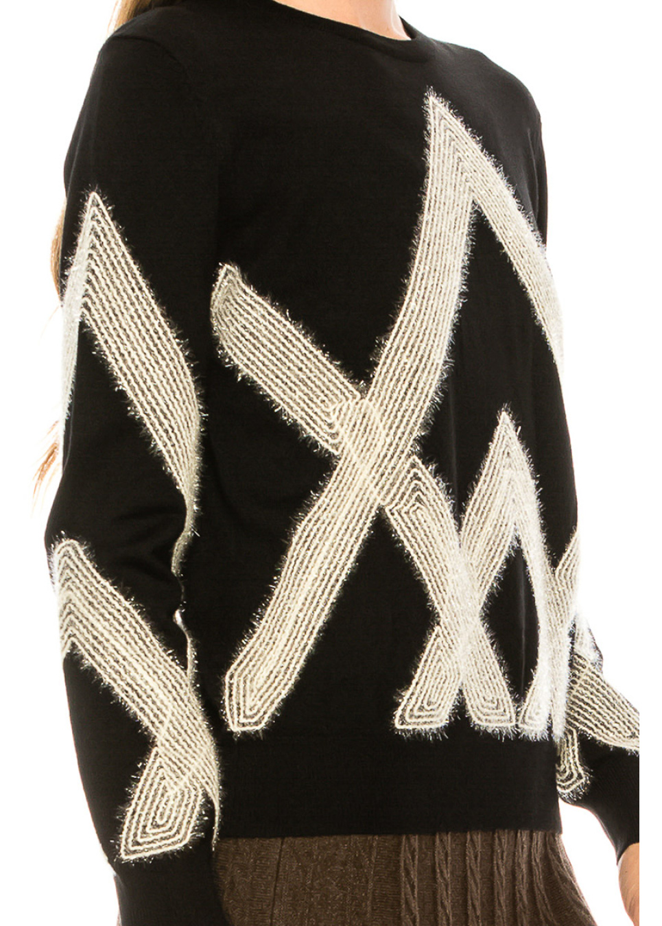 This YAL sweater is not only comfortable but also one of a kind. It has been skillfully constructed with a loose fit and an elegant crew neckline. The product's allure is enhanced by its unusual geometric design.