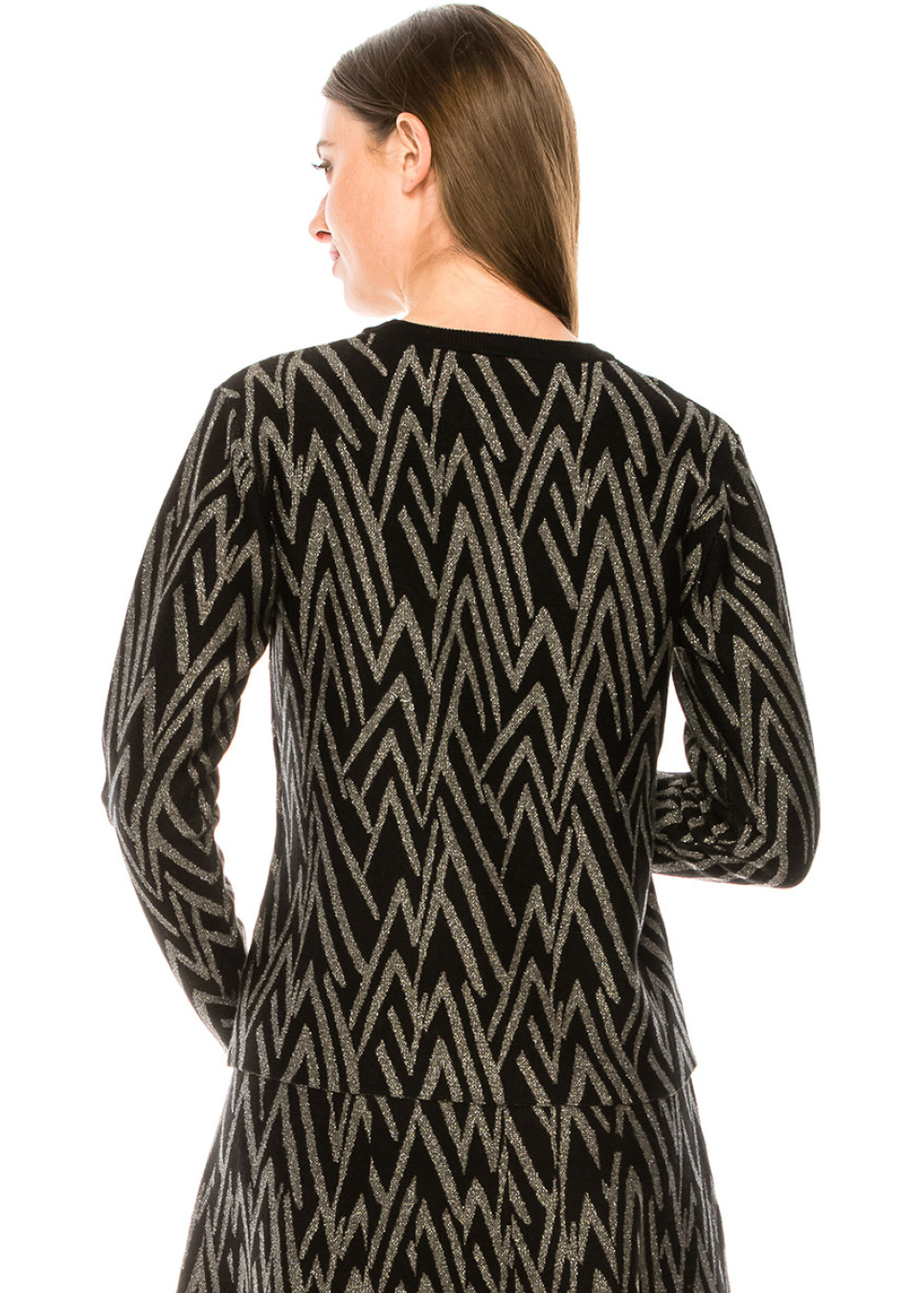 Geometric pattern sweater in silver and black