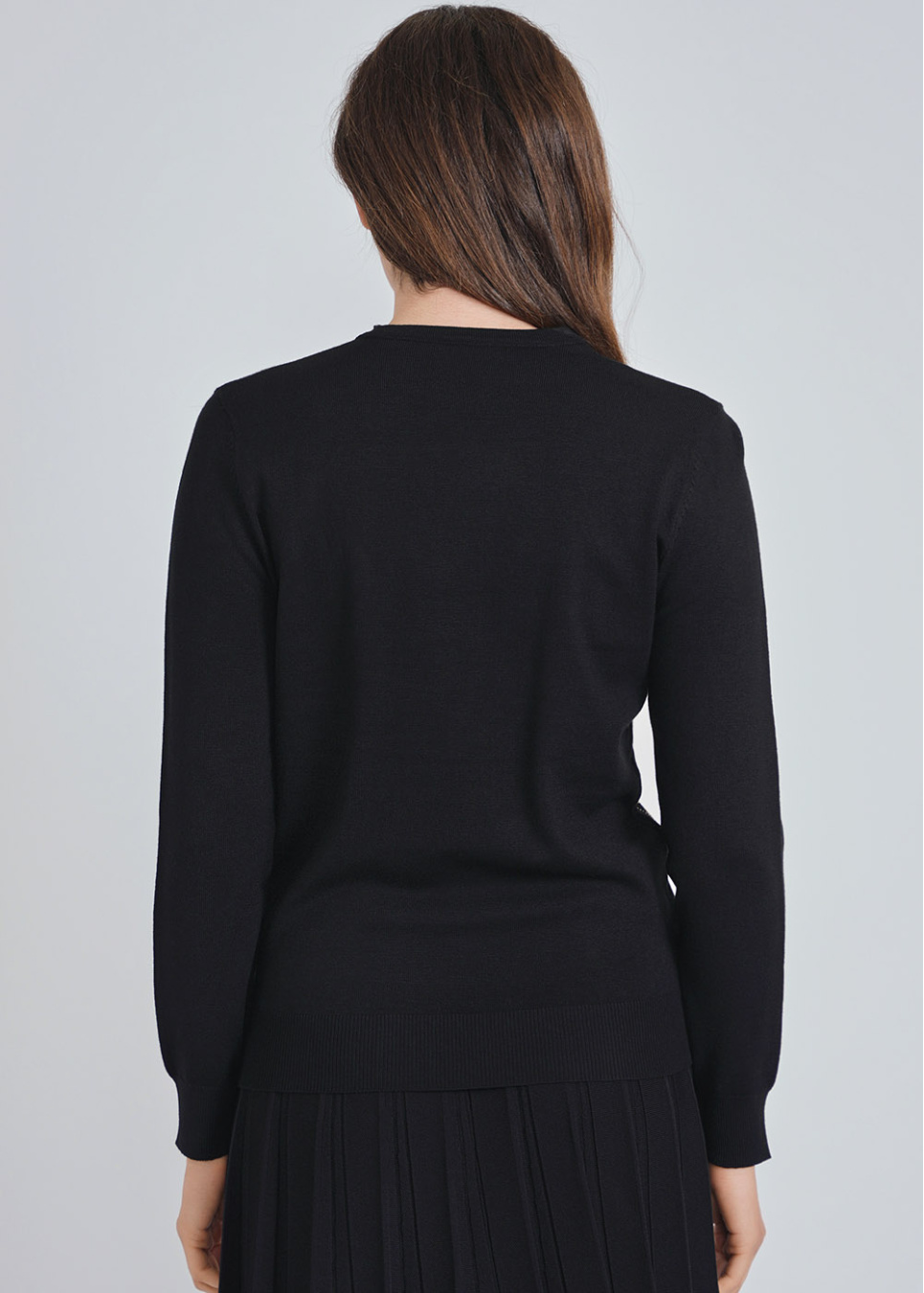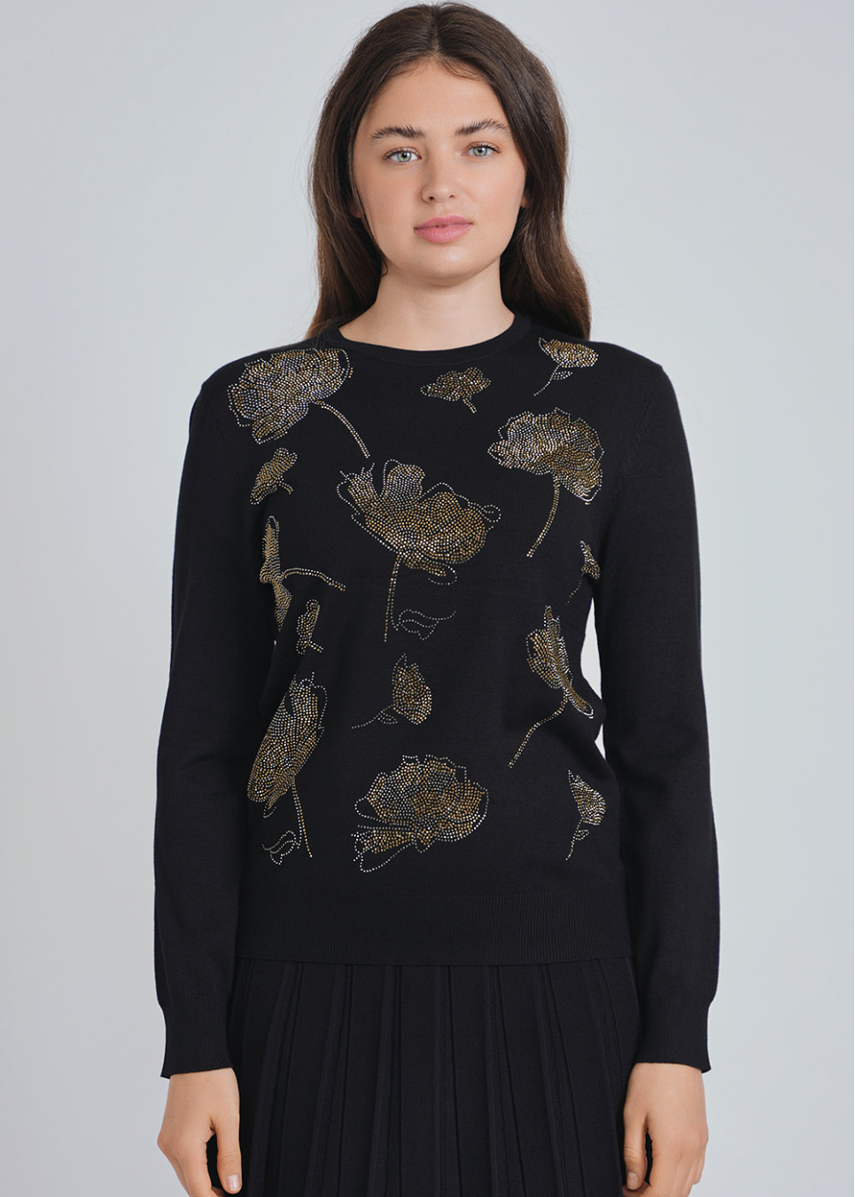 Glistening Flower Patterns on Black Knit Top