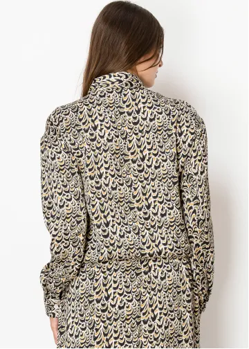 With a design that reminds you of flowing waves, this blouse brings a unique touch to your wardrobe. The gold accents add just the right amount of detail, while the structured collar keeps it neat and tidy.