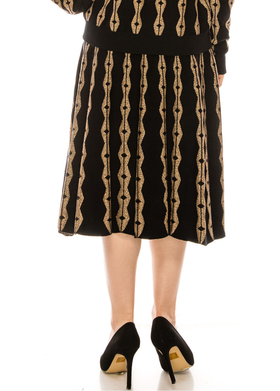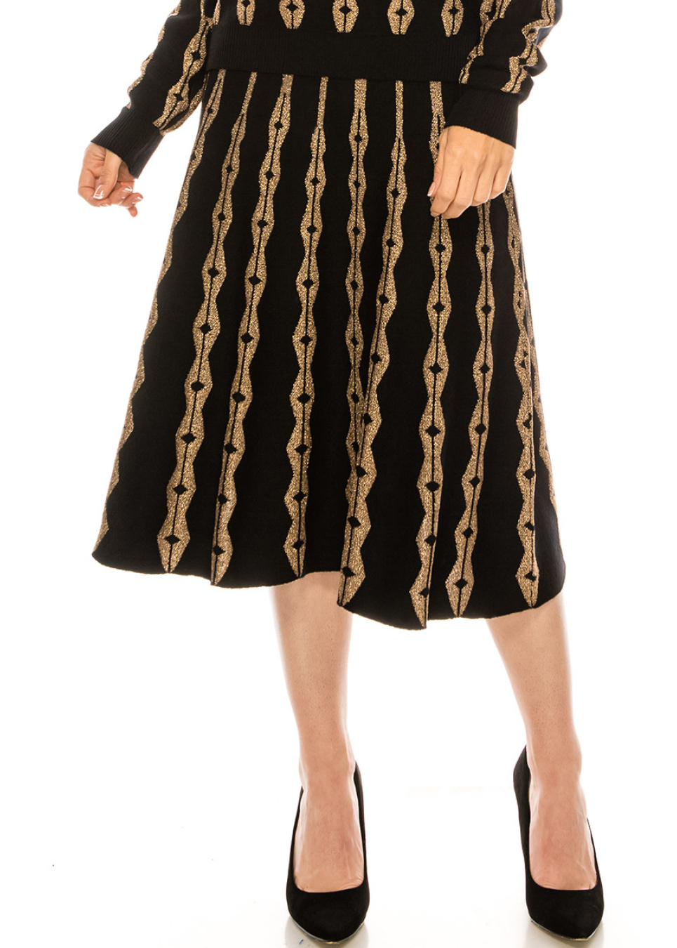 Tired of total black looks but still wanna be on the modest side? Try this stylish skirt with a golden glam pattern. The skirt doesn't restrict your movements and keeps you warm due to the high-quality fabric.