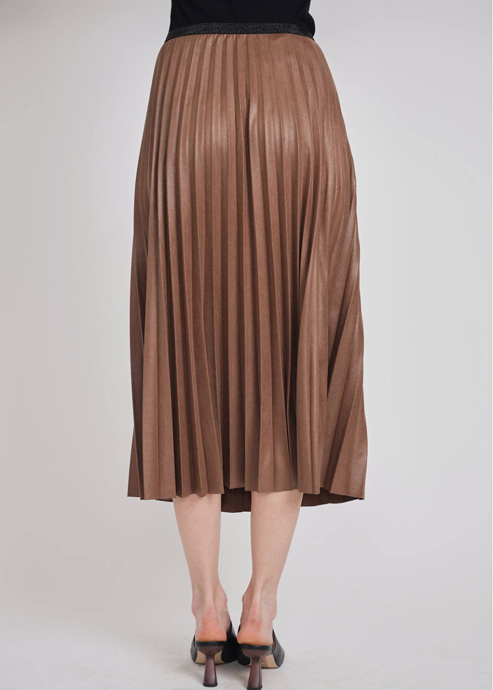 Mocha Glow Button-Front Pleated Skirt