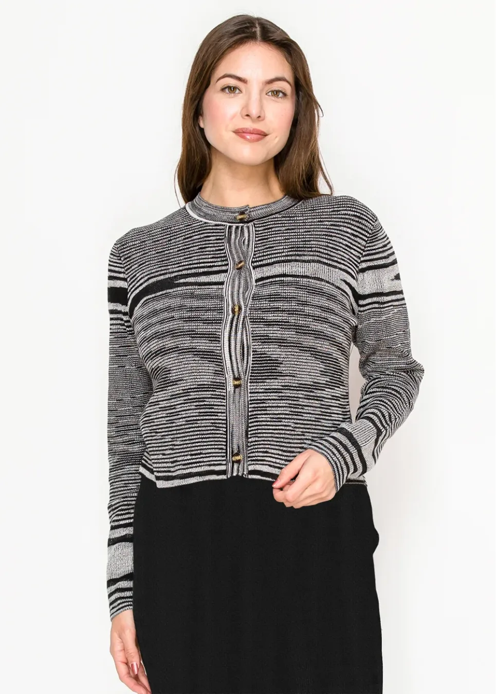 Gold-Trimmed Button-Up Cardigan in Black
