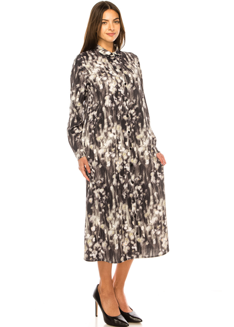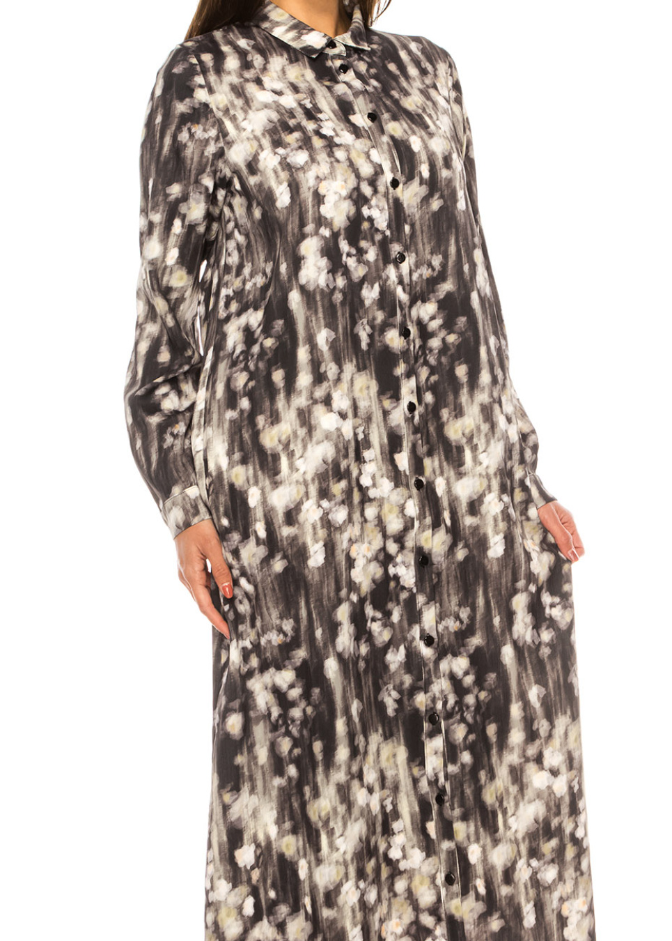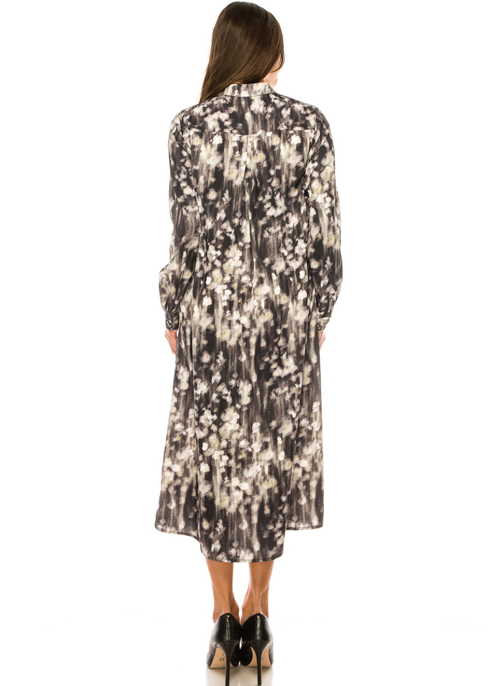 Burgundy Floral Tie-Waist Midi Shirt Dress