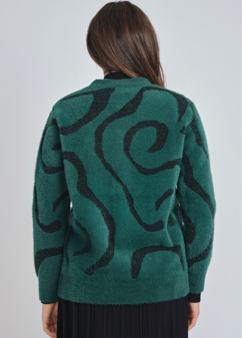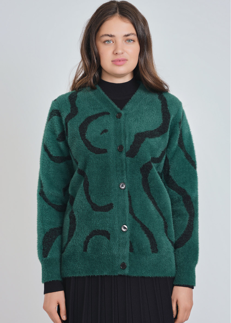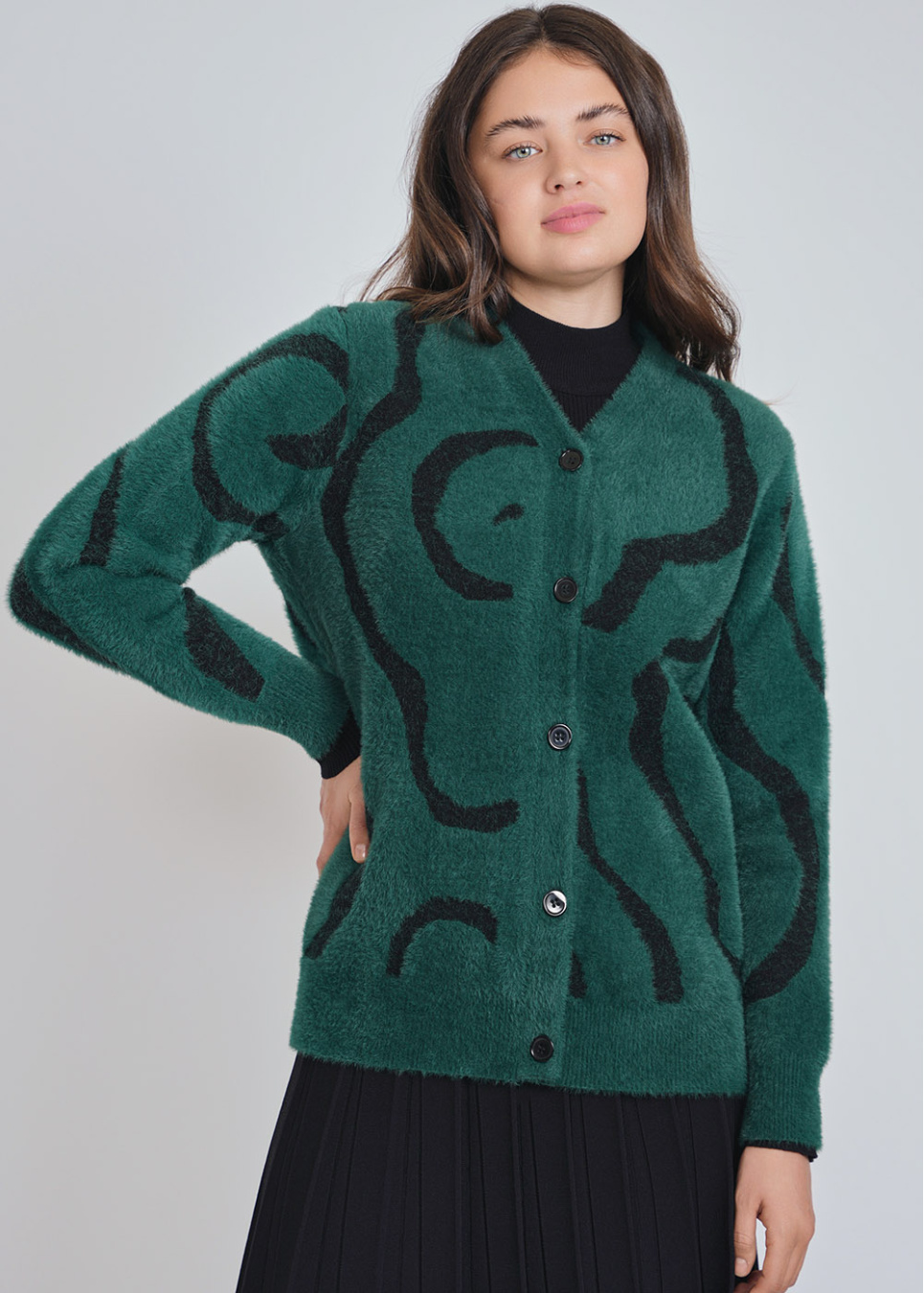 Green Cardigan Comfort: Soft Furry Knit with V-Neck Design