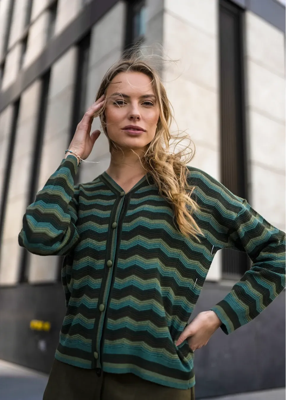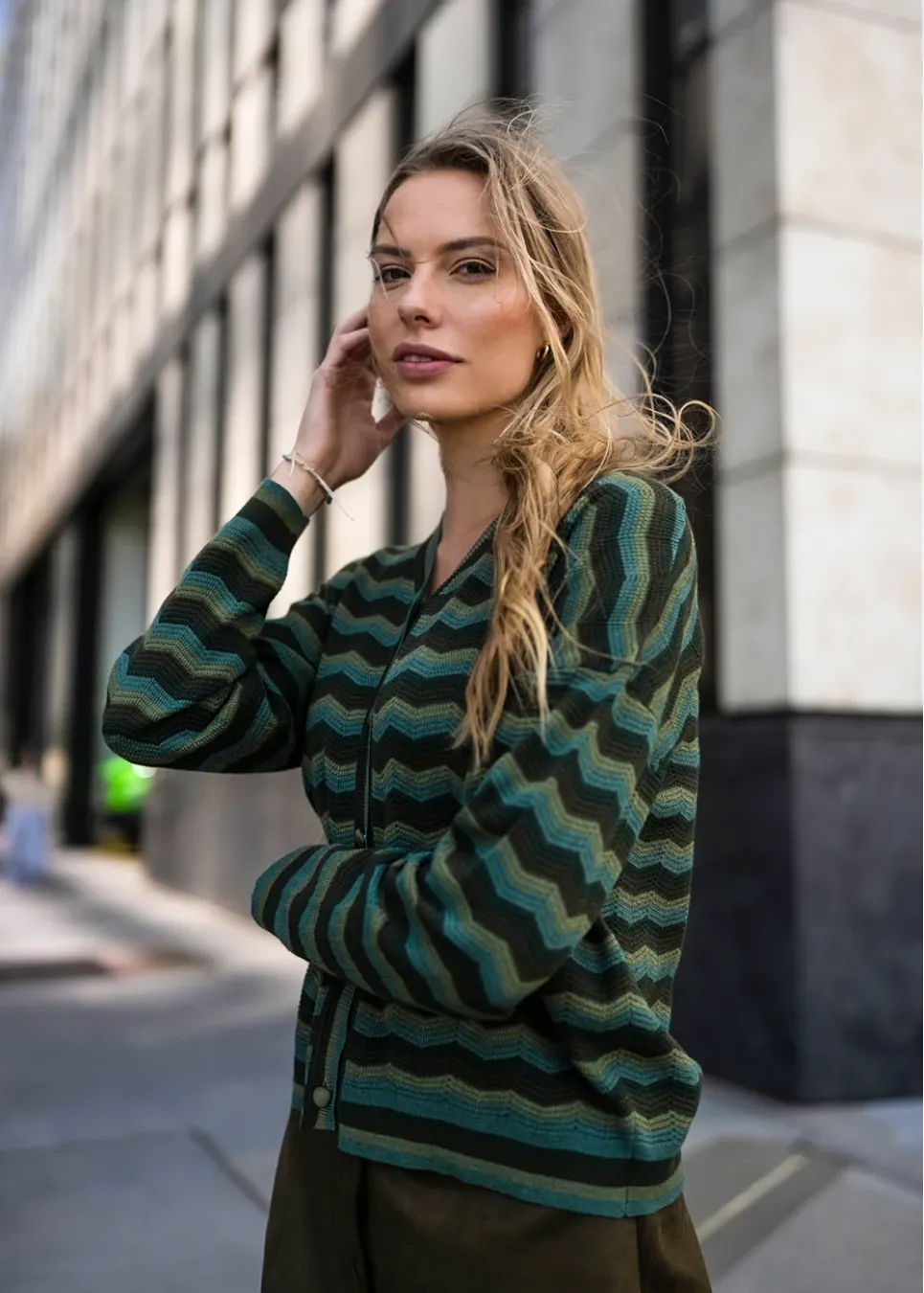 Green Chevron Knit Fall Outfit