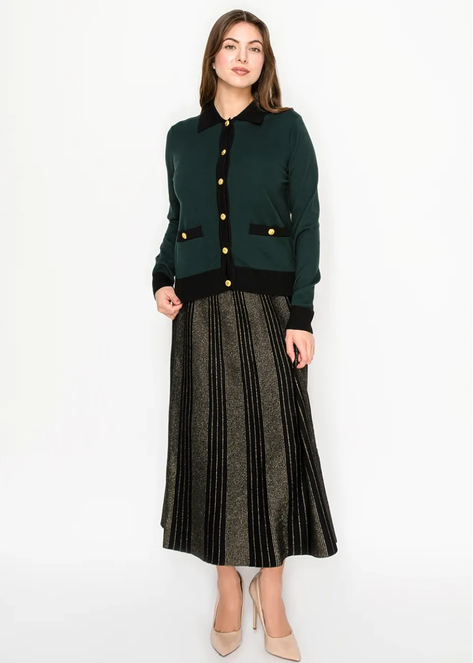 This cardigan feels a little classic, a little special with its shiny gold buttons. Soft and easy to throw on, it makes every outfit feel put together.