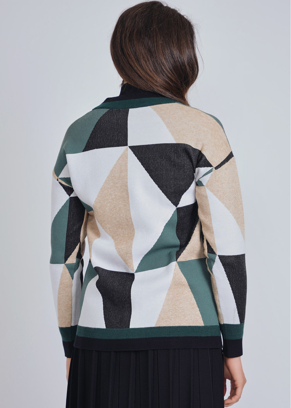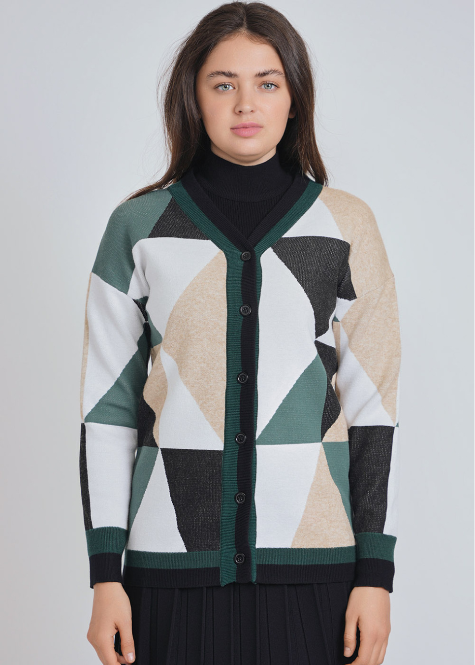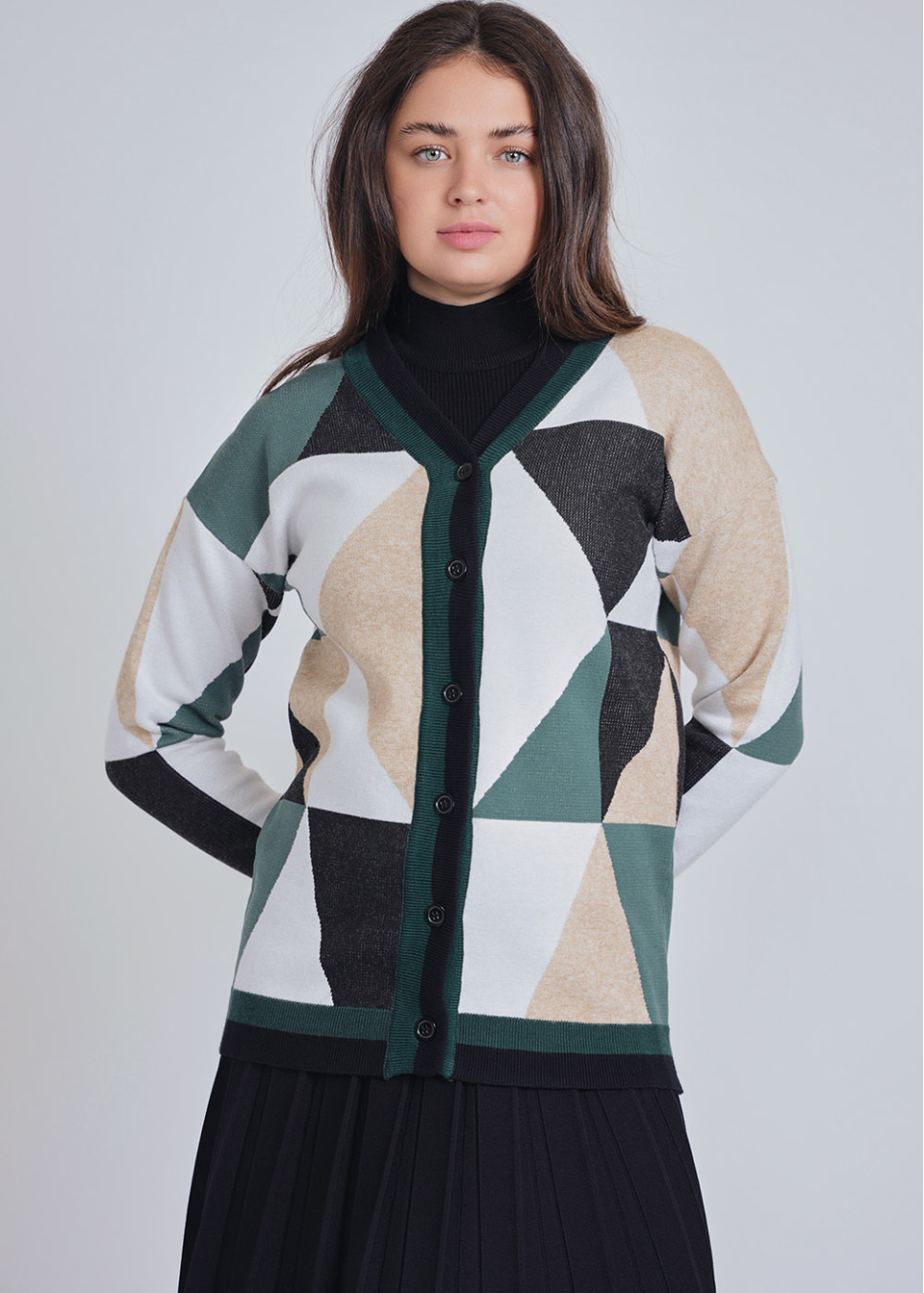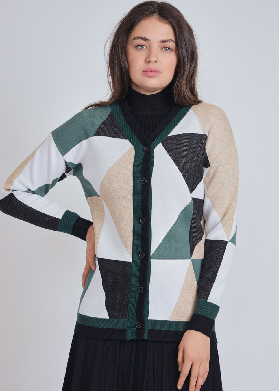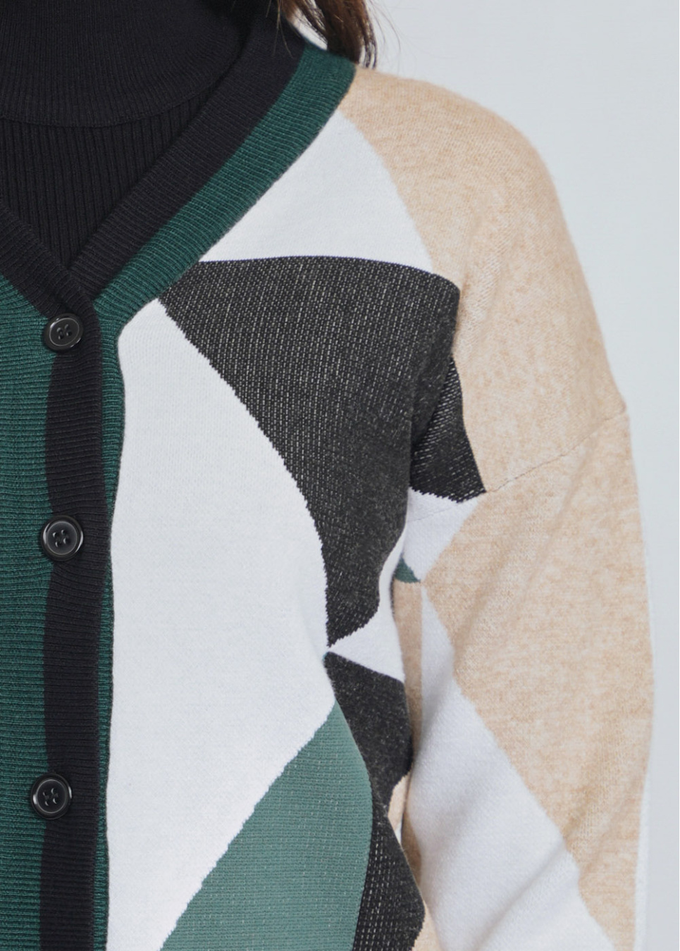 Green Embrace: Earthy Color Block Cardigan with Buttons