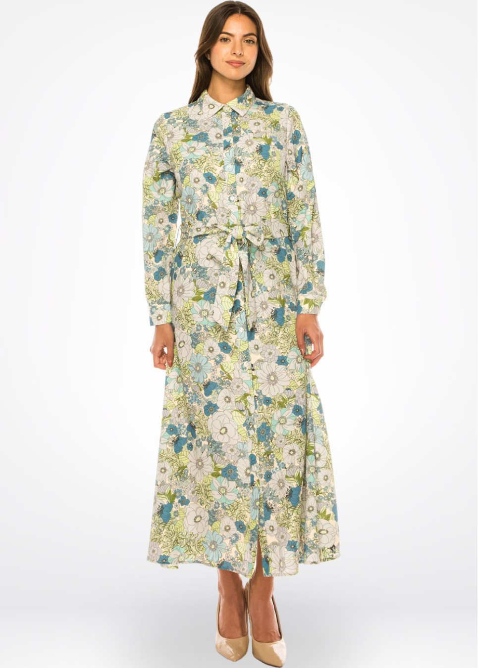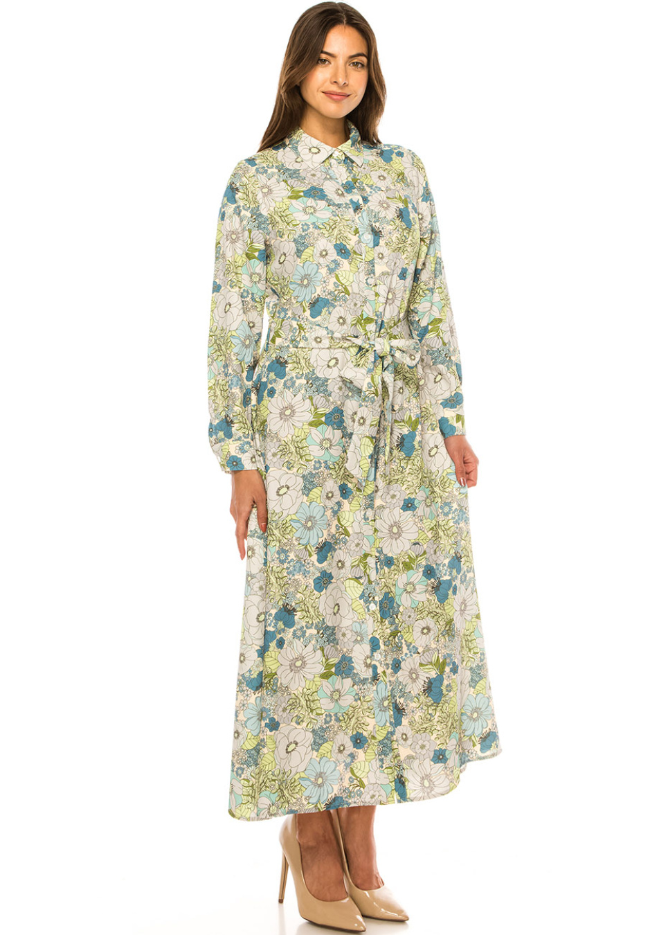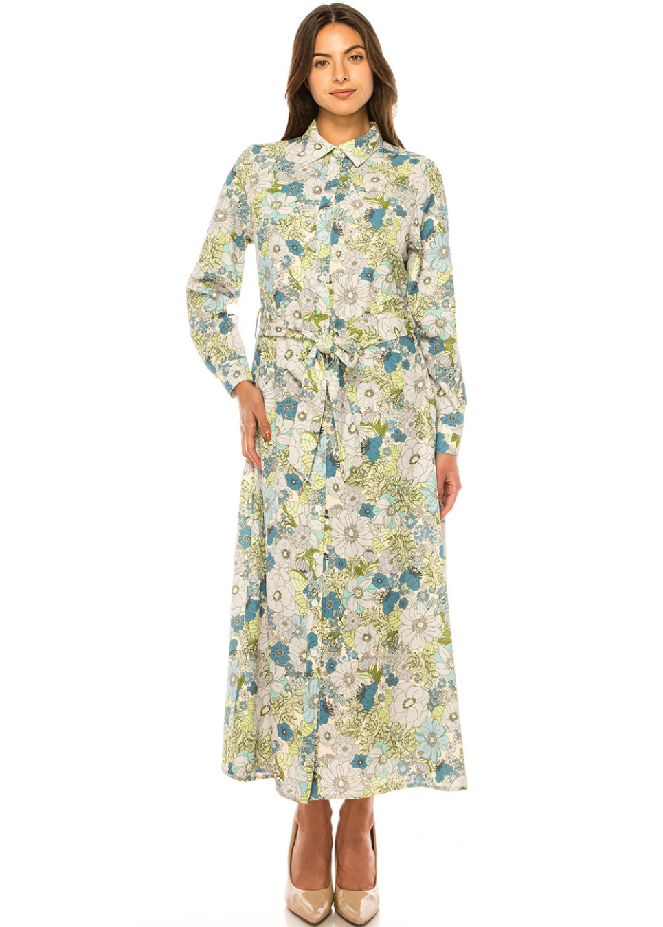 Green And Blue Vertical Stripes Long Sleeve T-Shirt