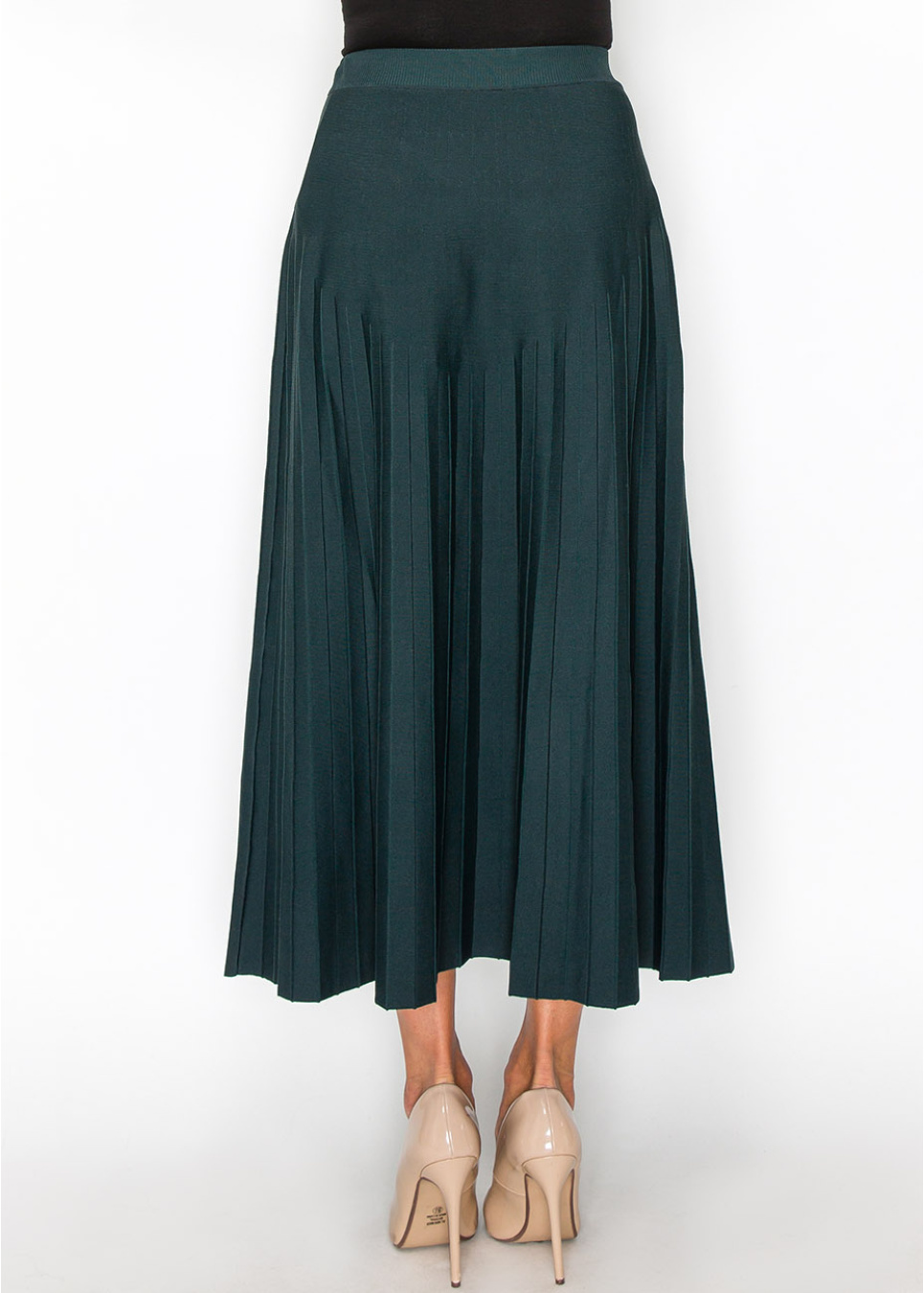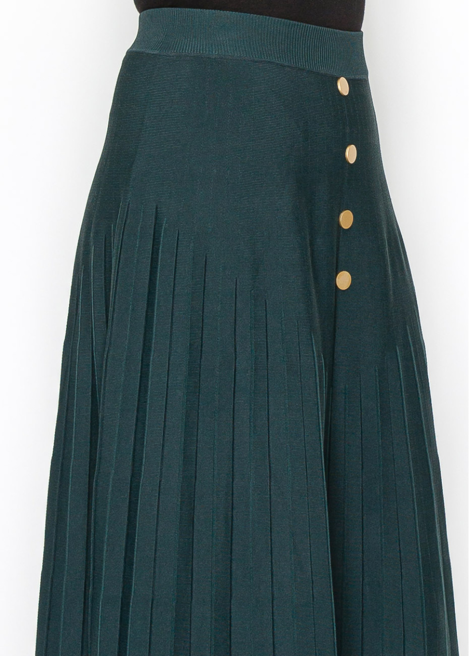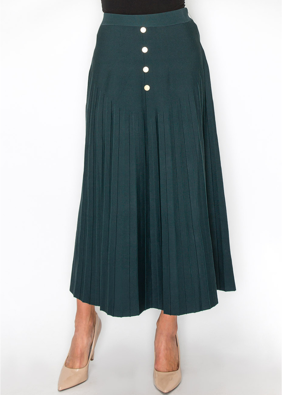 Green Pleated Midi Skirt with Button Accents