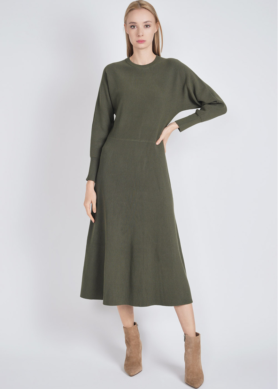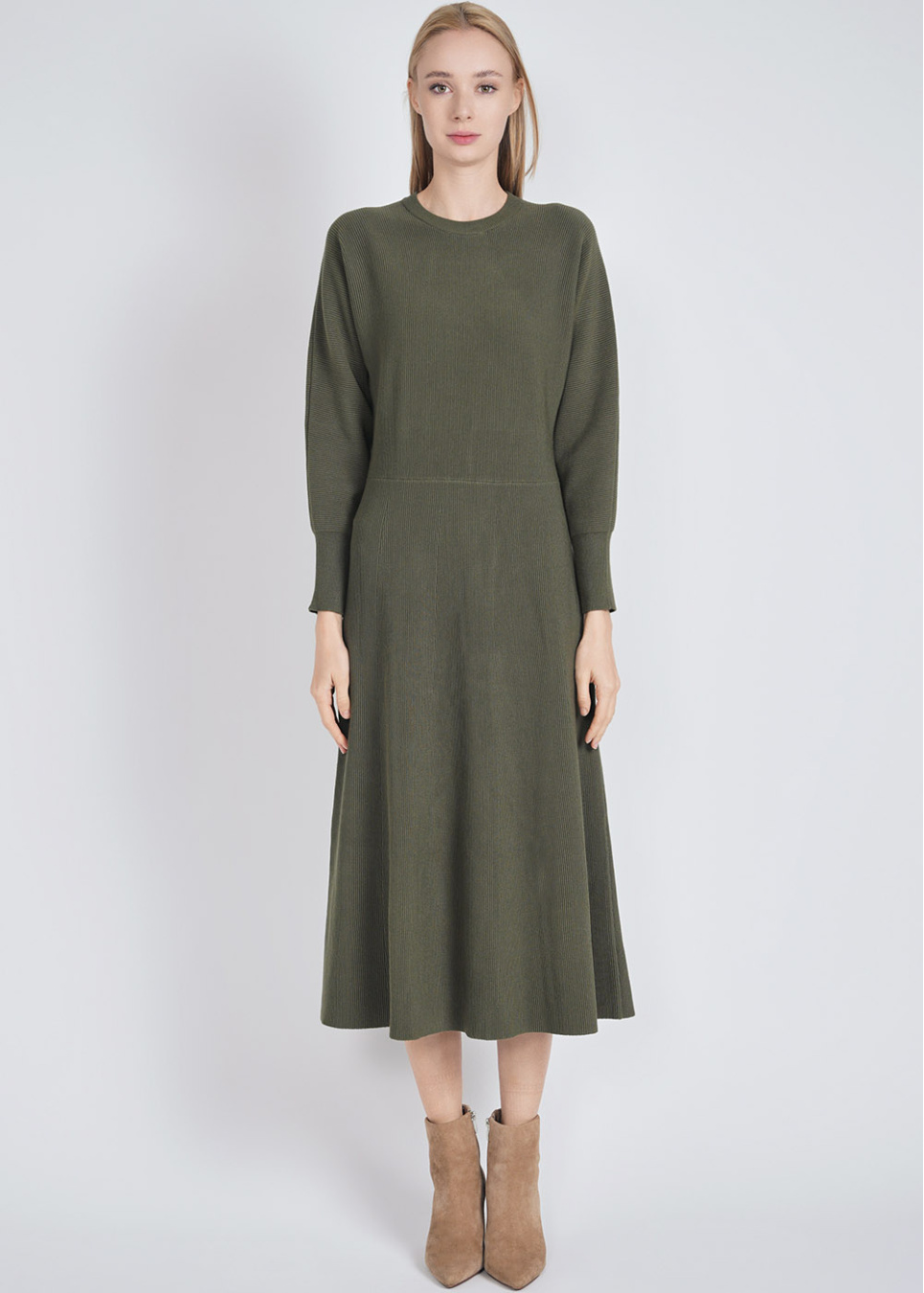 Green Ribbed Knit Dress: Classic & Comfortable