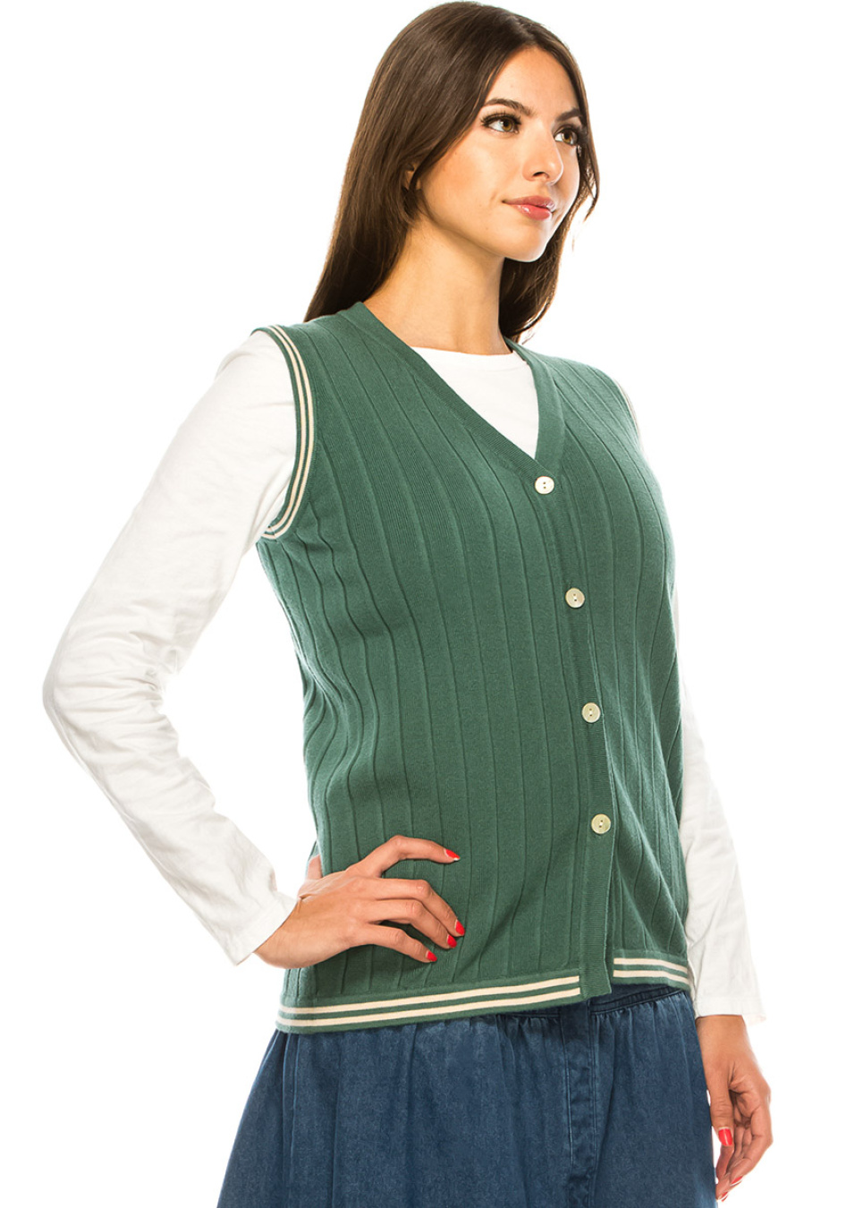 Green V-Neck Ribbed Vest
