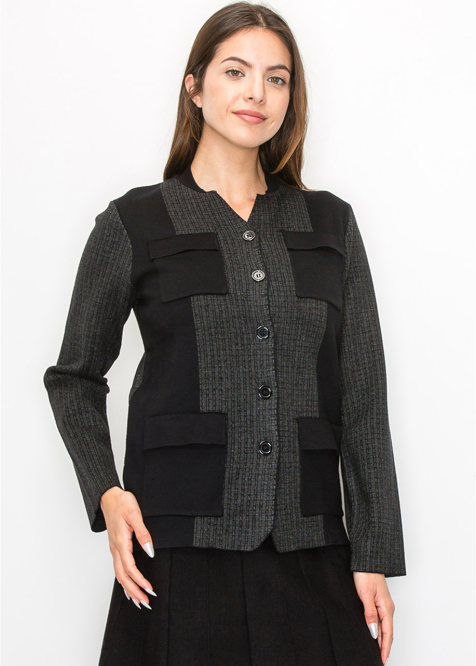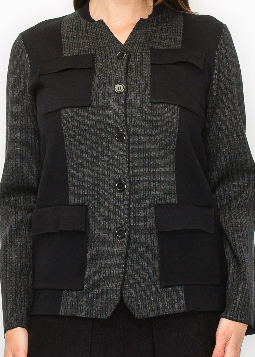 Grey Knit Cardigan with Modern Pocket Details