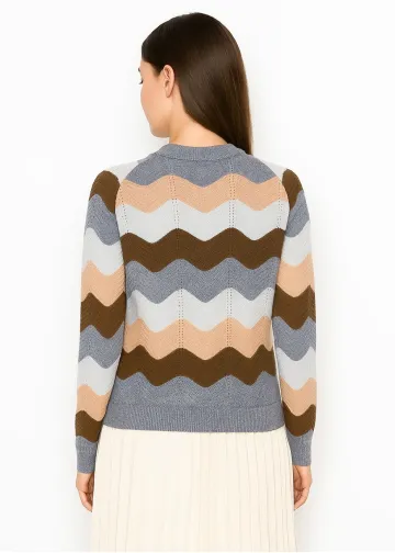 Grey Knit Sweater with Multi Wave Stripes
