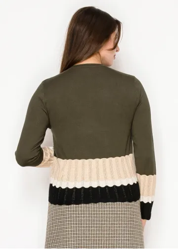 This sweater feels cozy and cheerful with its soft waves of color. Easy to pair with skirts or jeans, it’s a piece you’ll keep reaching for.