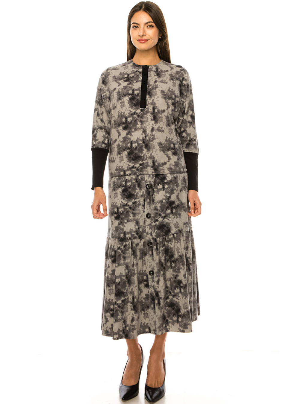 Black & Striped Long Sleeve Henley