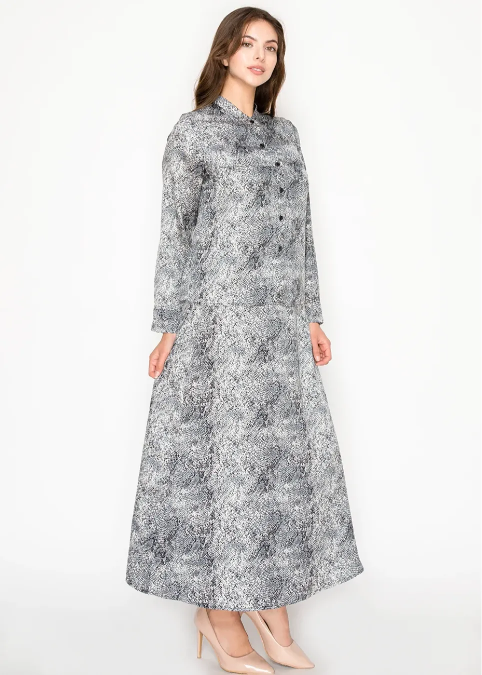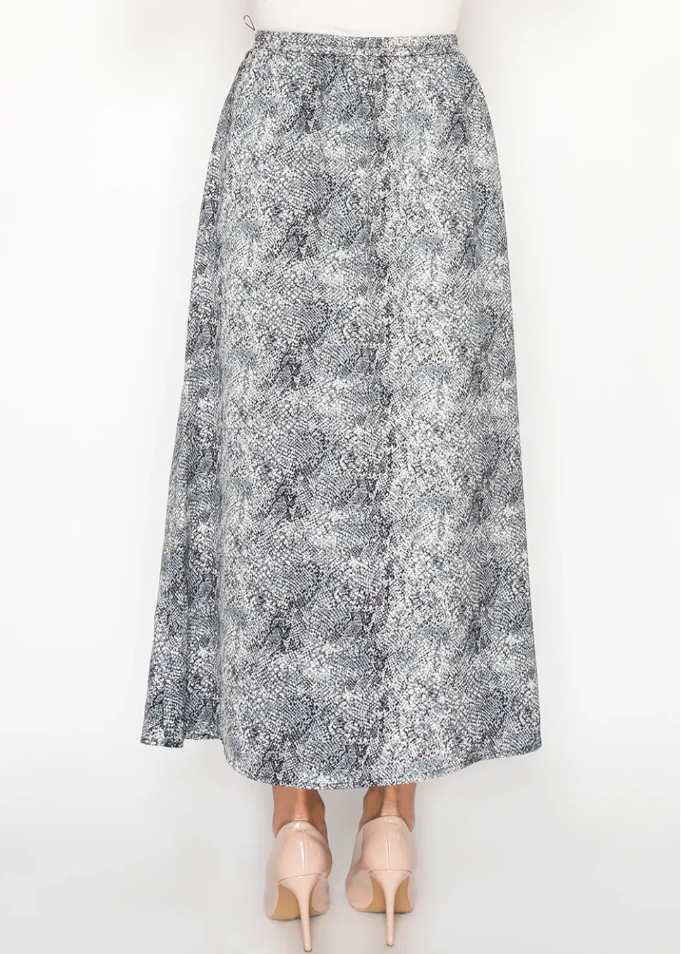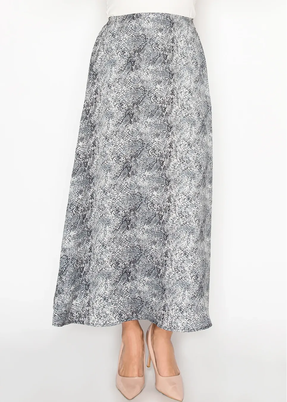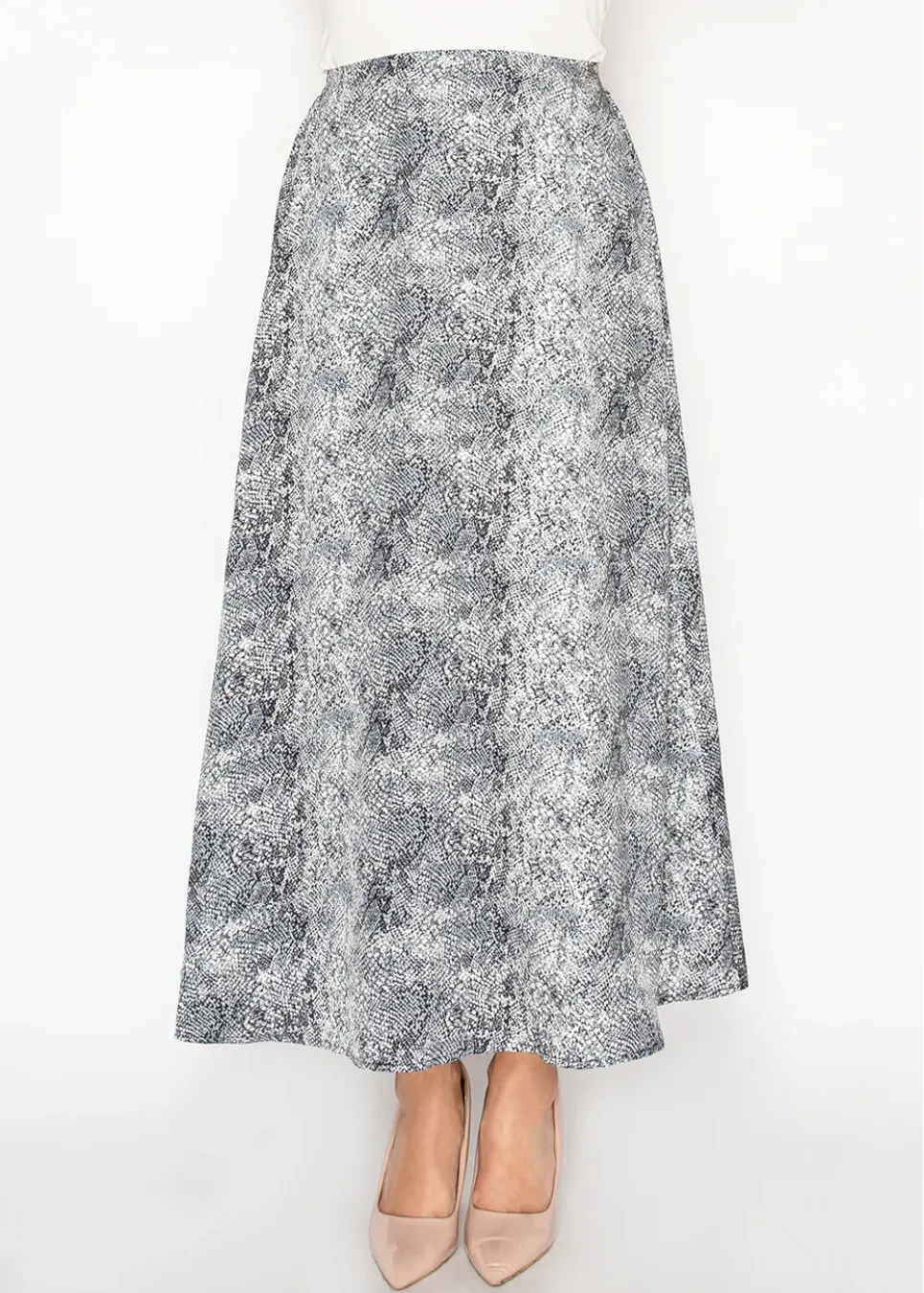 A skirt that moves with you—soft, swishy, and easy to love. The grey snake print feels fresh yet effortless for everyday wear.
