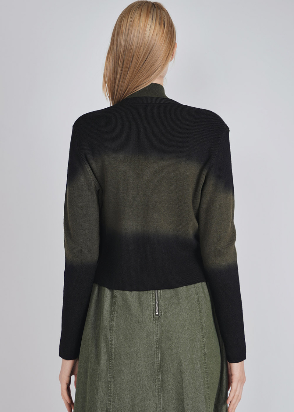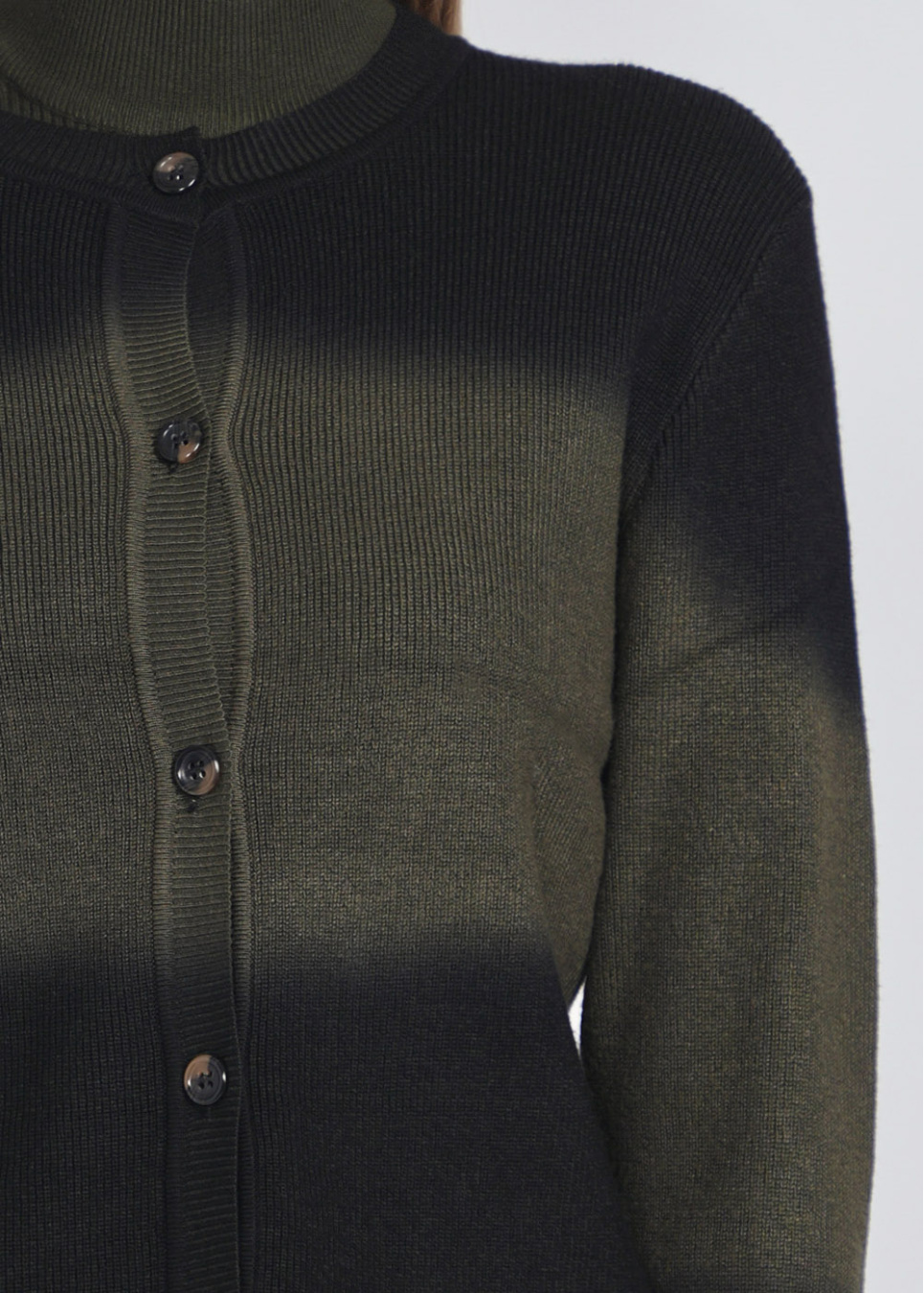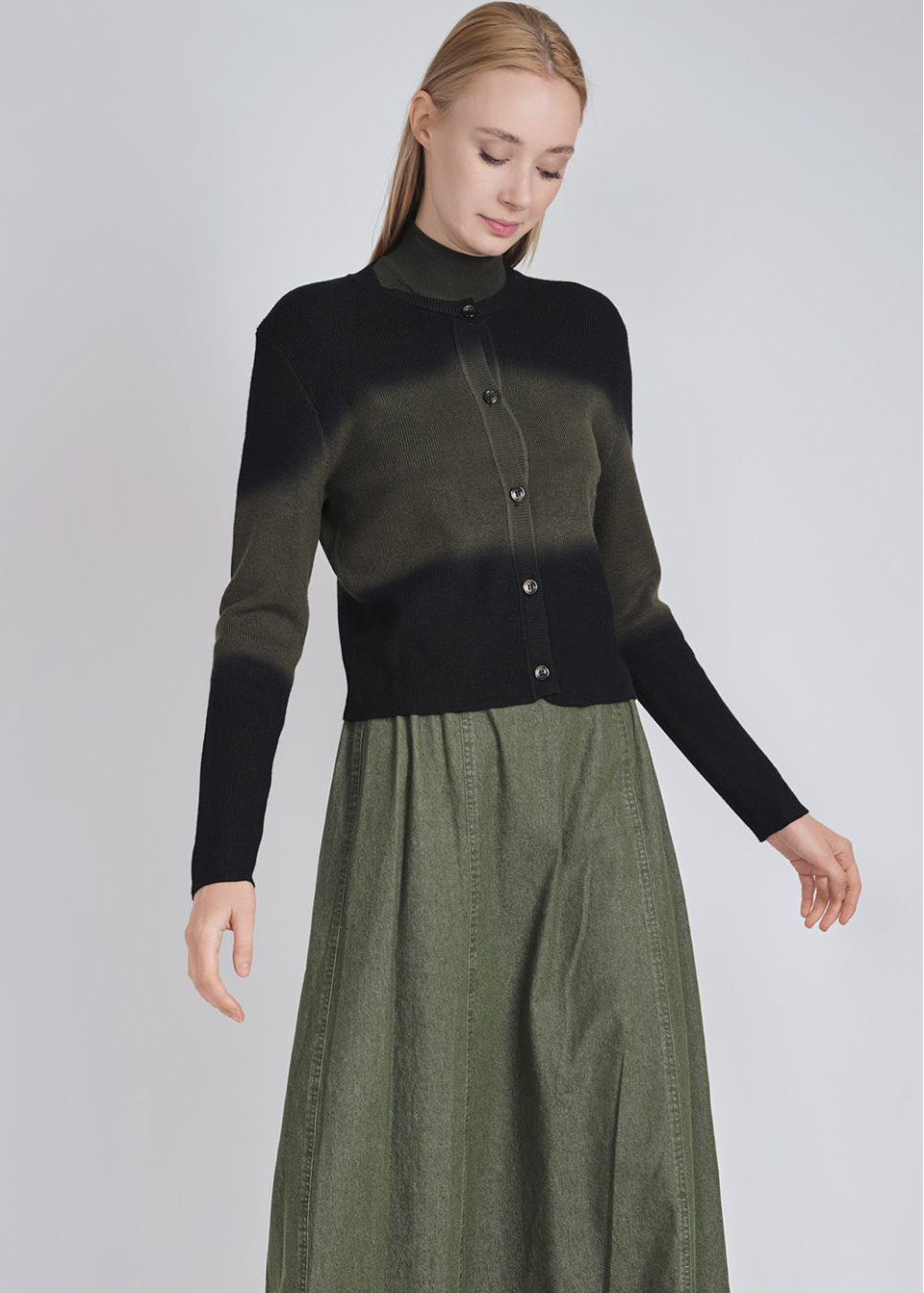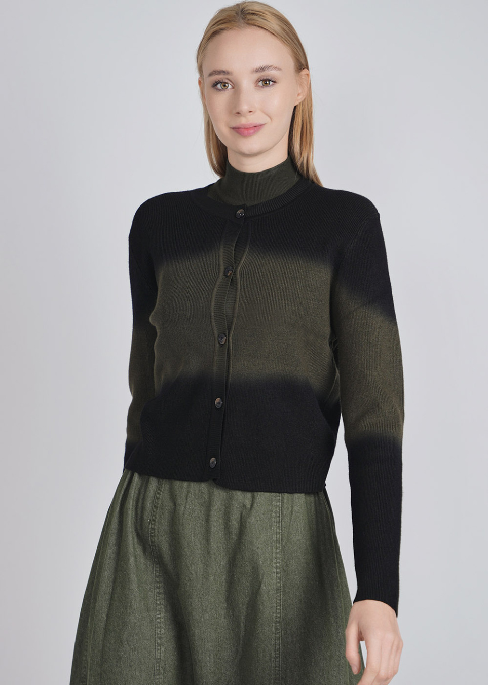 Harmonious Blend: Olive and Black Crew Neck Cardigan