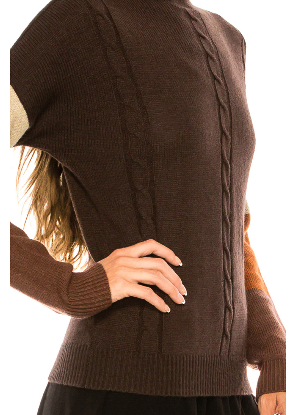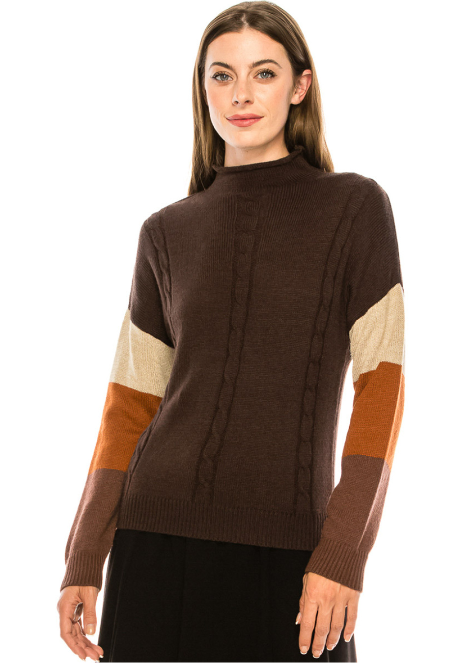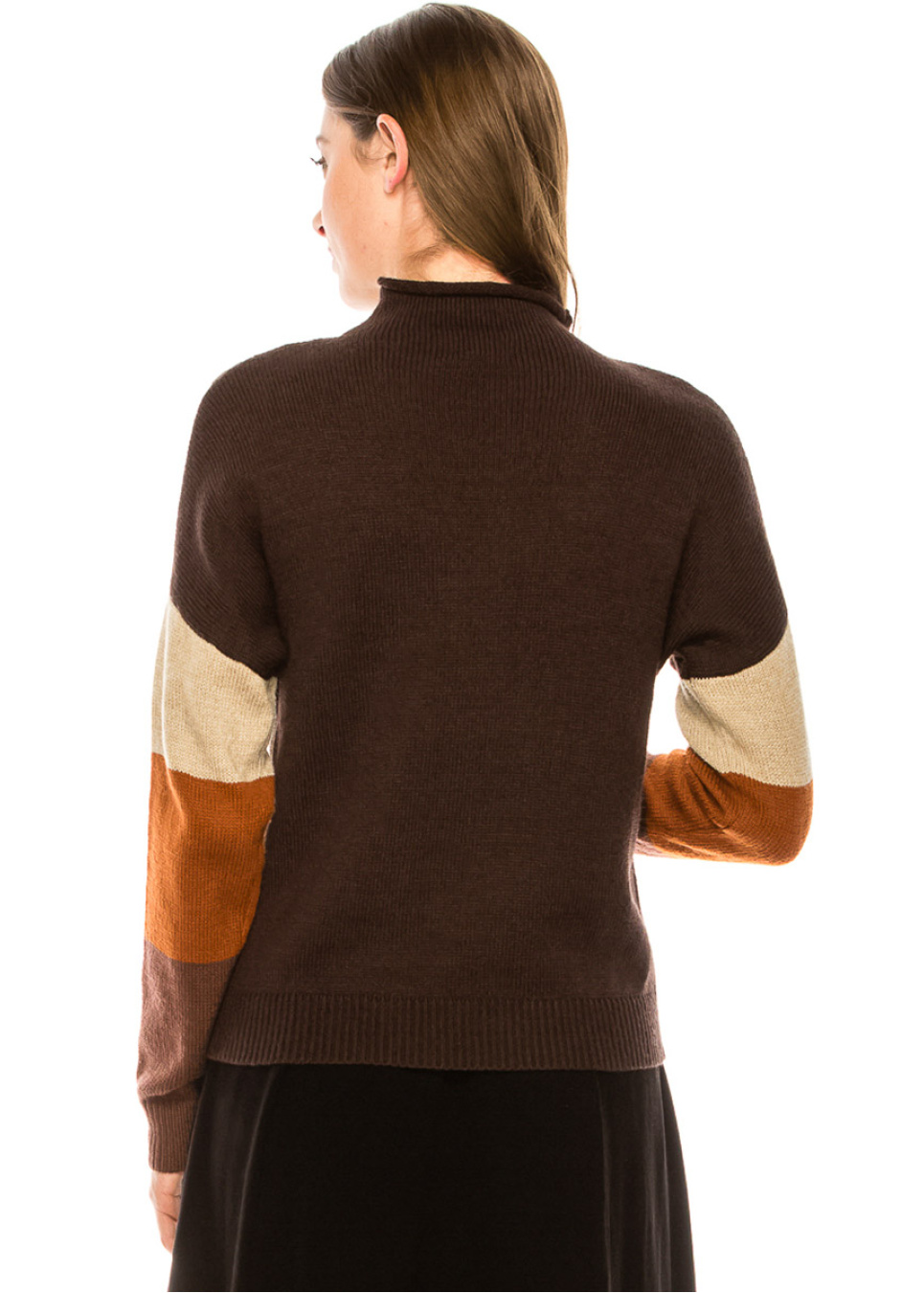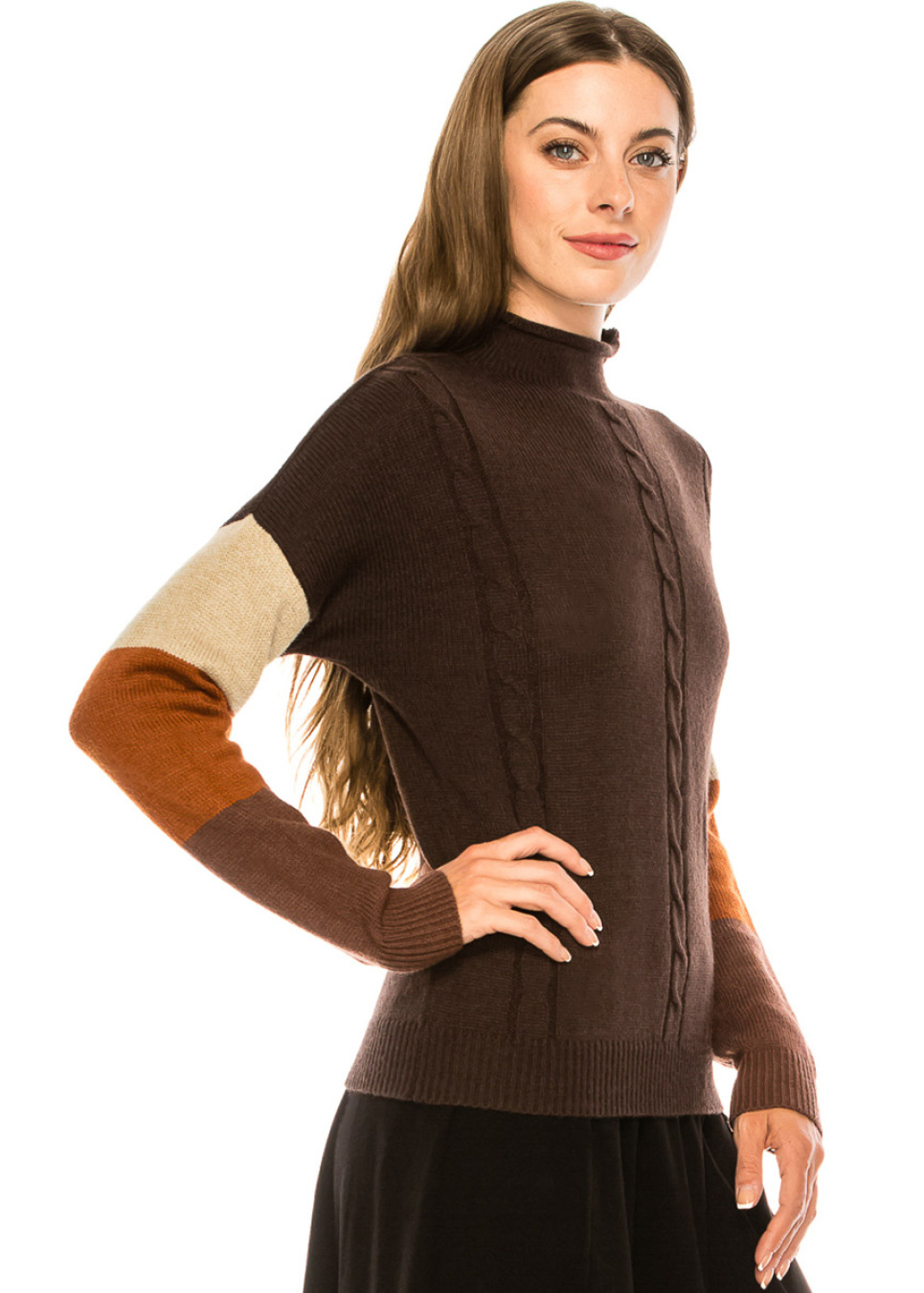Mock Neck Colorblock Sweater – Blue & Mocha