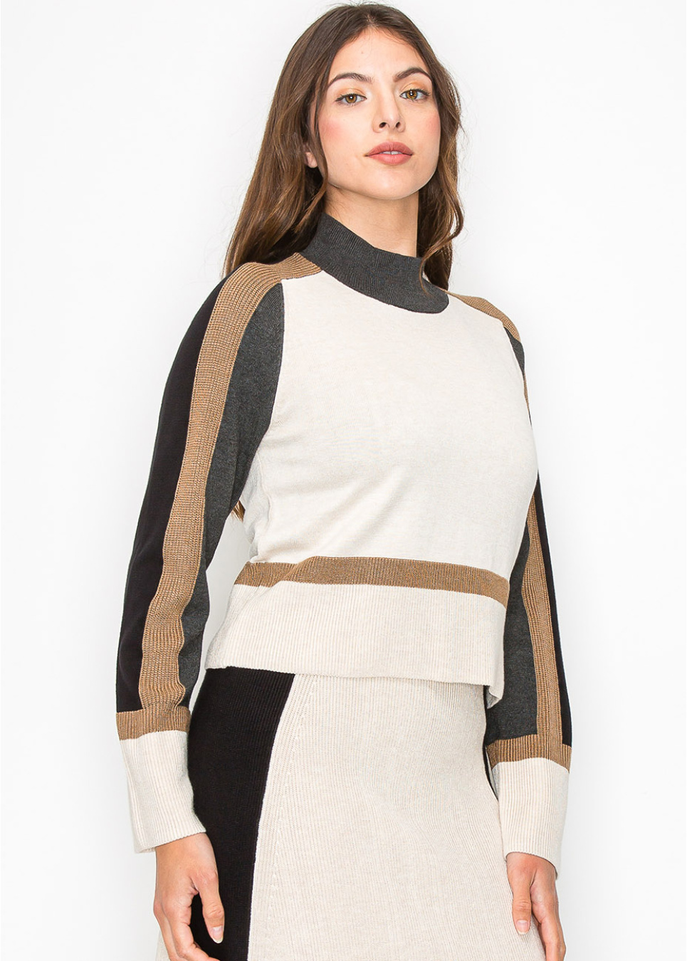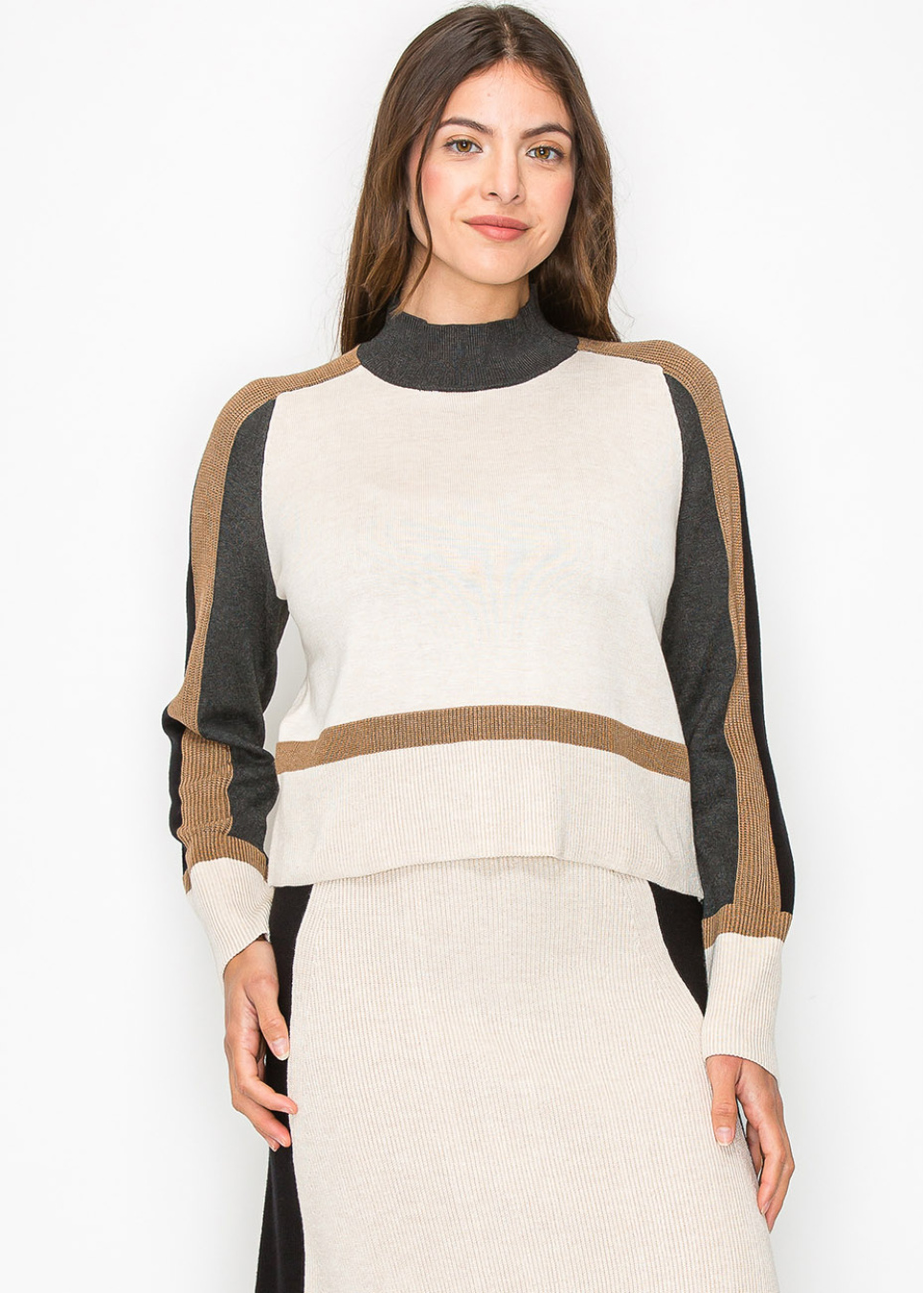 Mock Neck Colorblock Sweater – Blue & Mocha