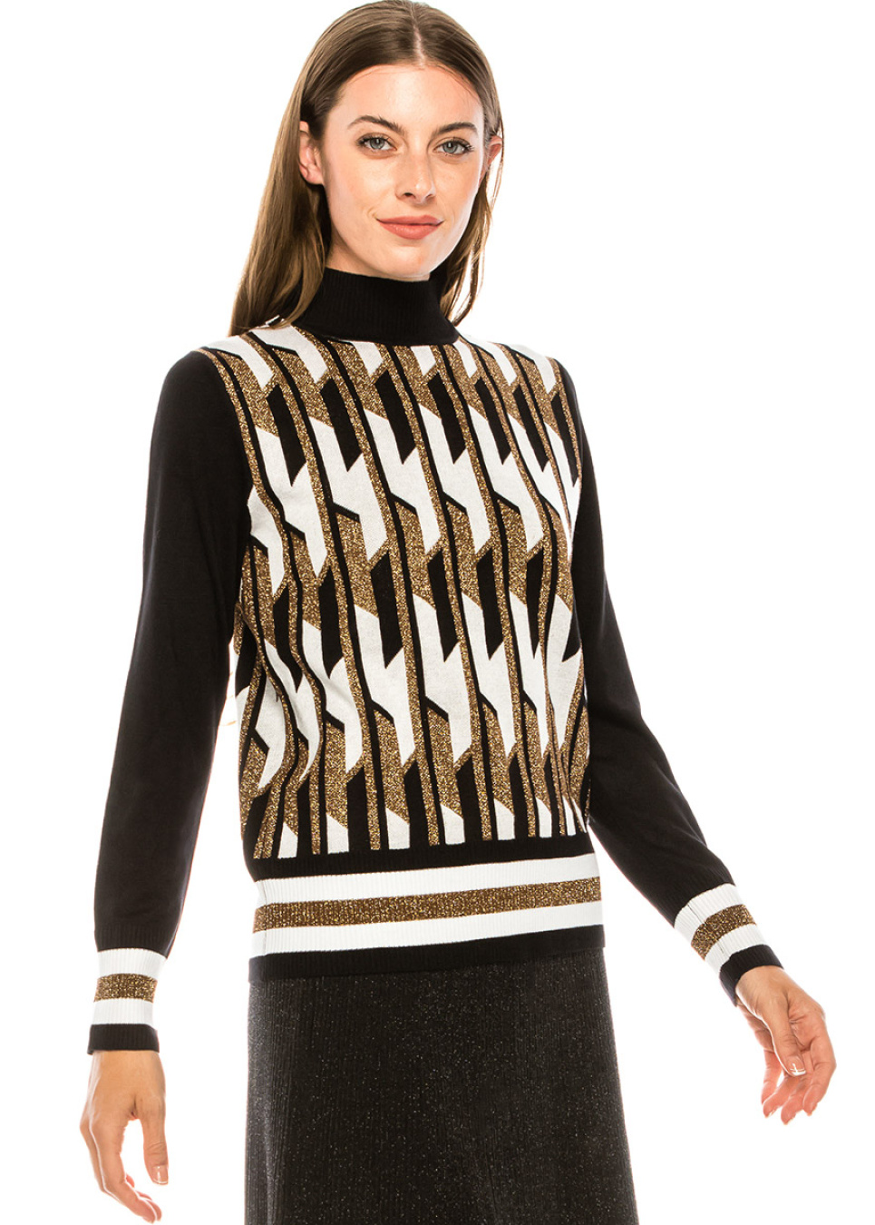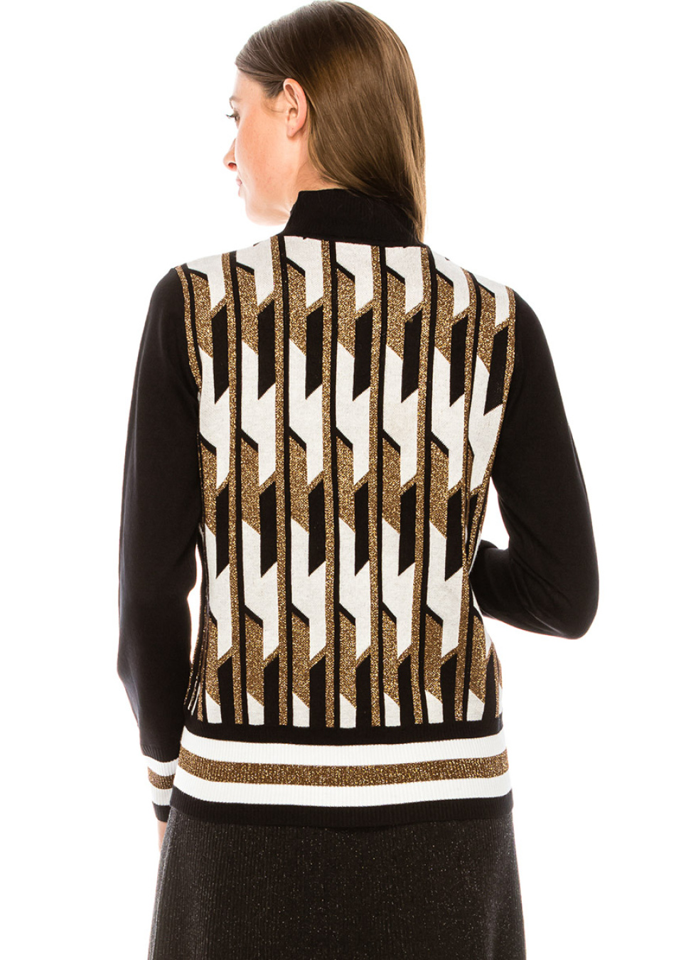Black Geometric Knit Mock Neck Sweater