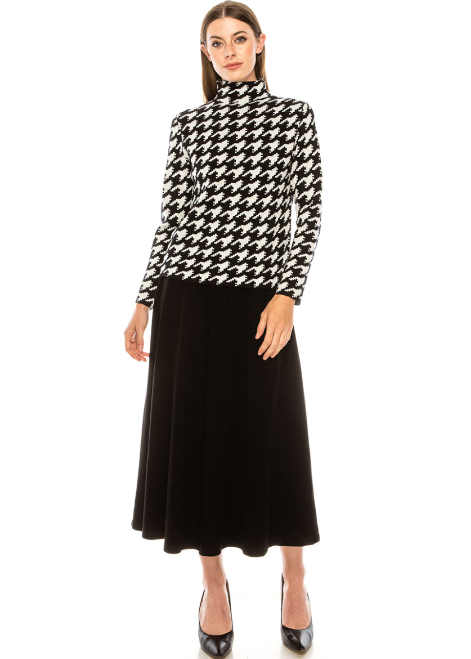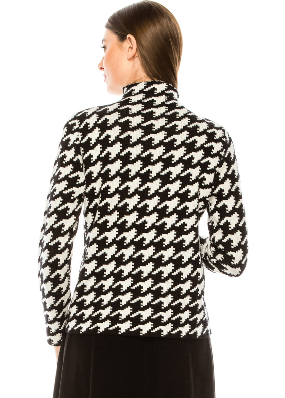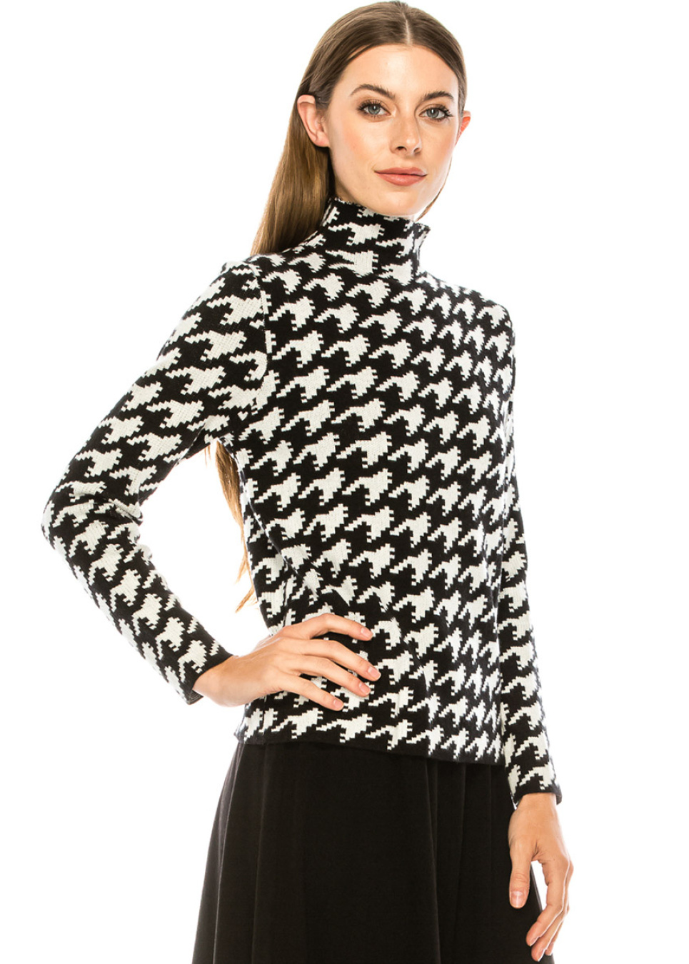 This knit sweater has a traditional and laid-back look thanks to its high collar, long sleeves, and houndstooth pattern. When paired with denim or skirts, it transforms each outfit into a style that stands out. The use of a soft and high-quality fabric results in extra comfort.