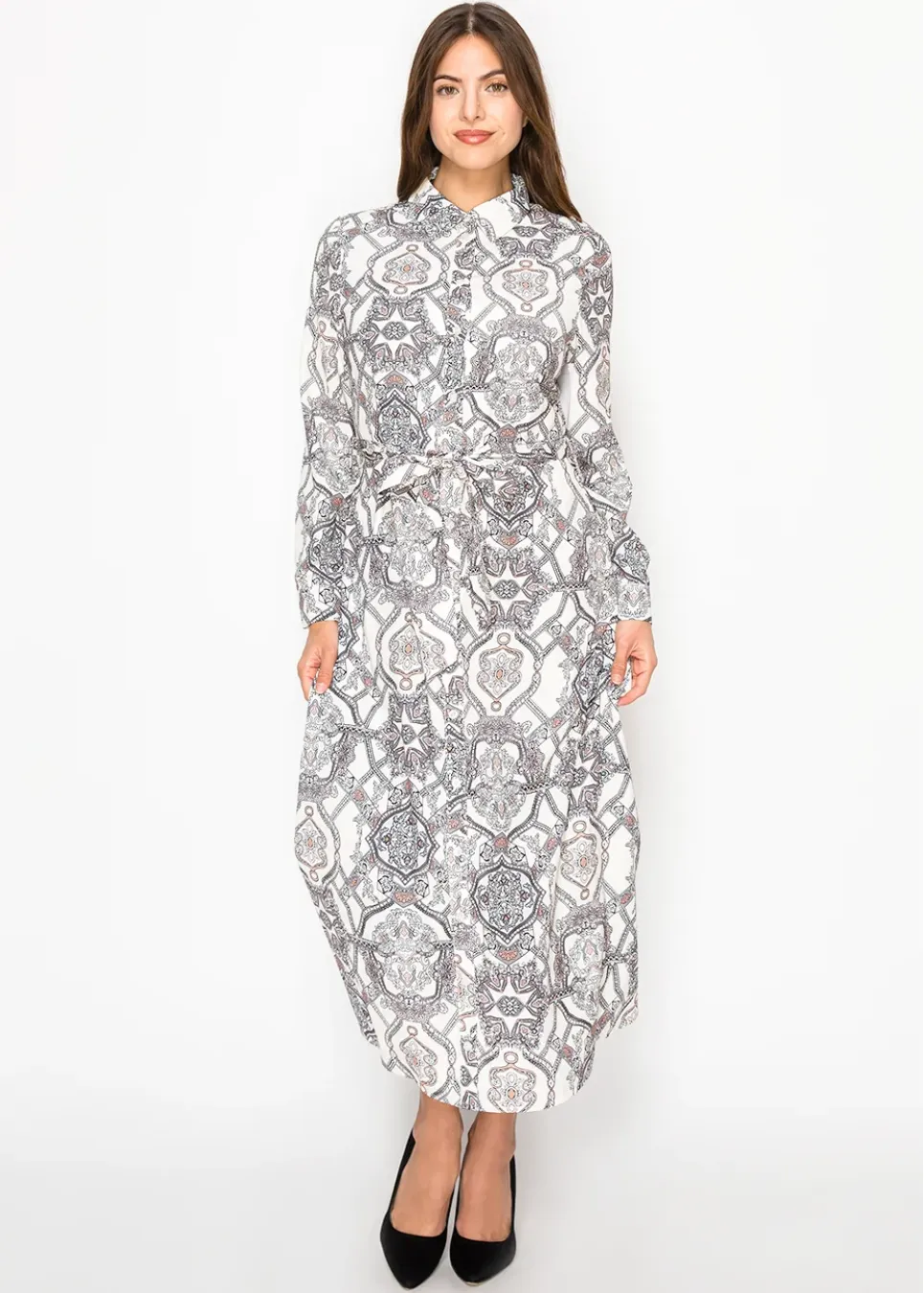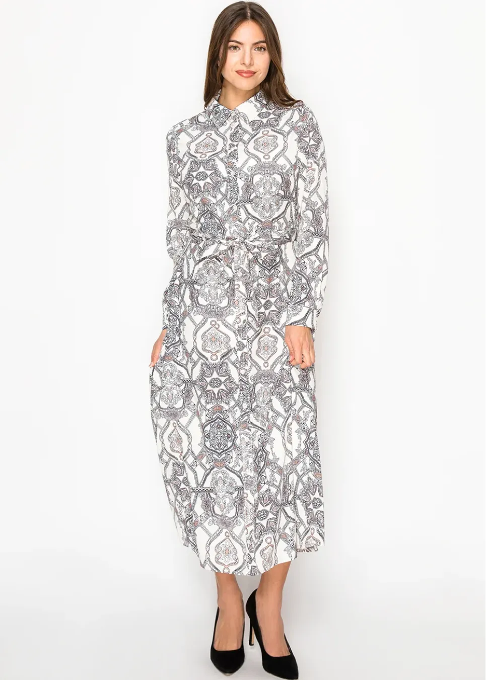Amber & Rose Paisley Belted Shirt Dress