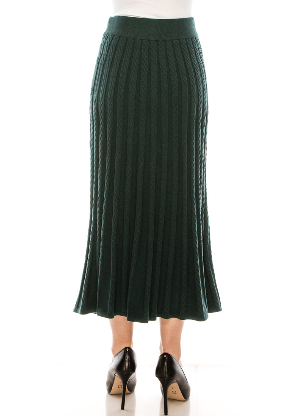 A long knitted skirt is a perfect choice for cold days. If you are looking for a comfy, high-quality piece, consider this item. The fabric is soft, warm, and pleasant to the body. Cable knit and waistband offer a perfect fit and extra comfort.