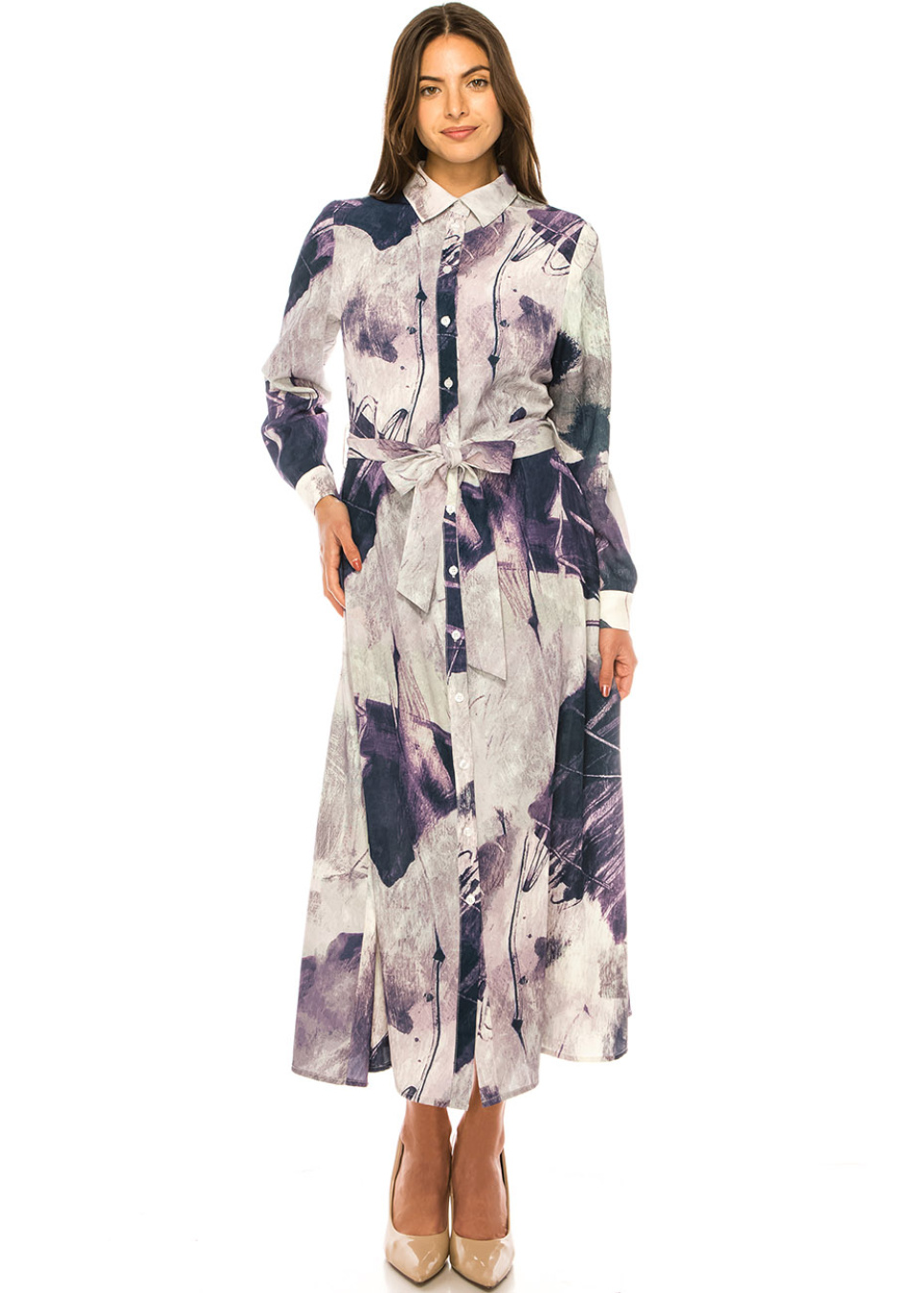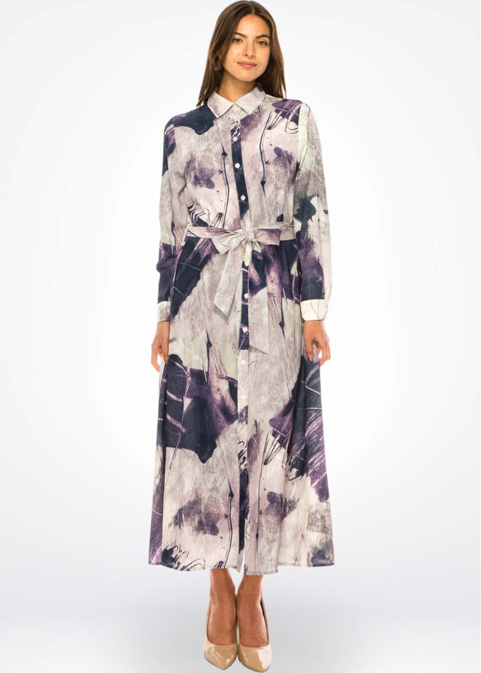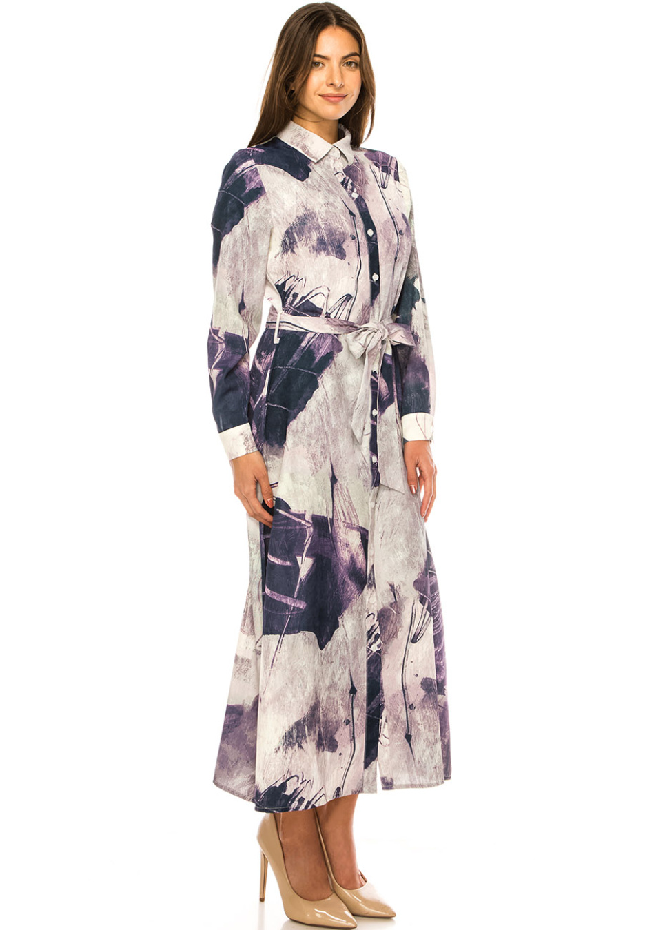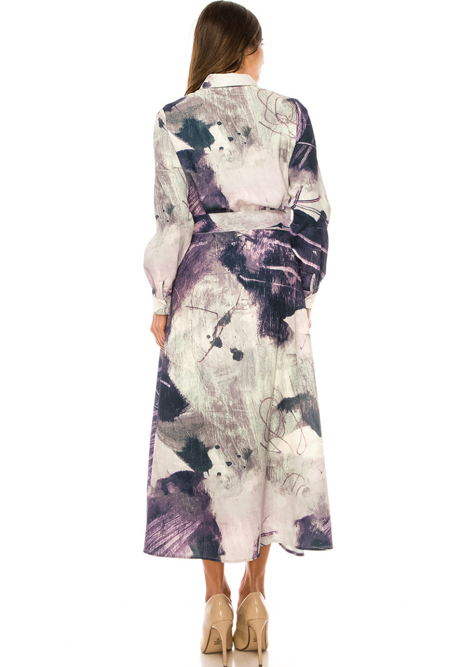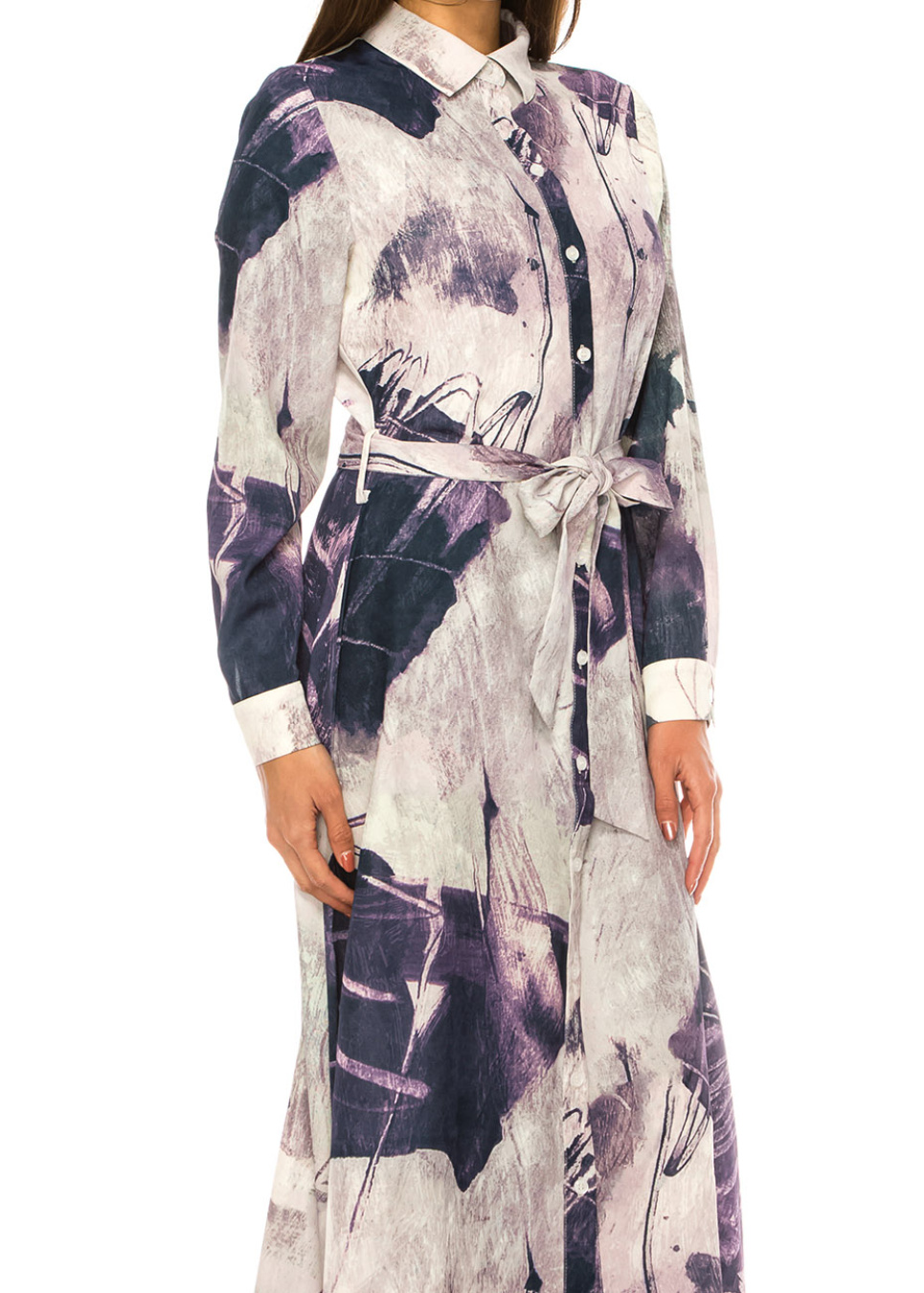 Lavender Hues Abstract Belted Dress