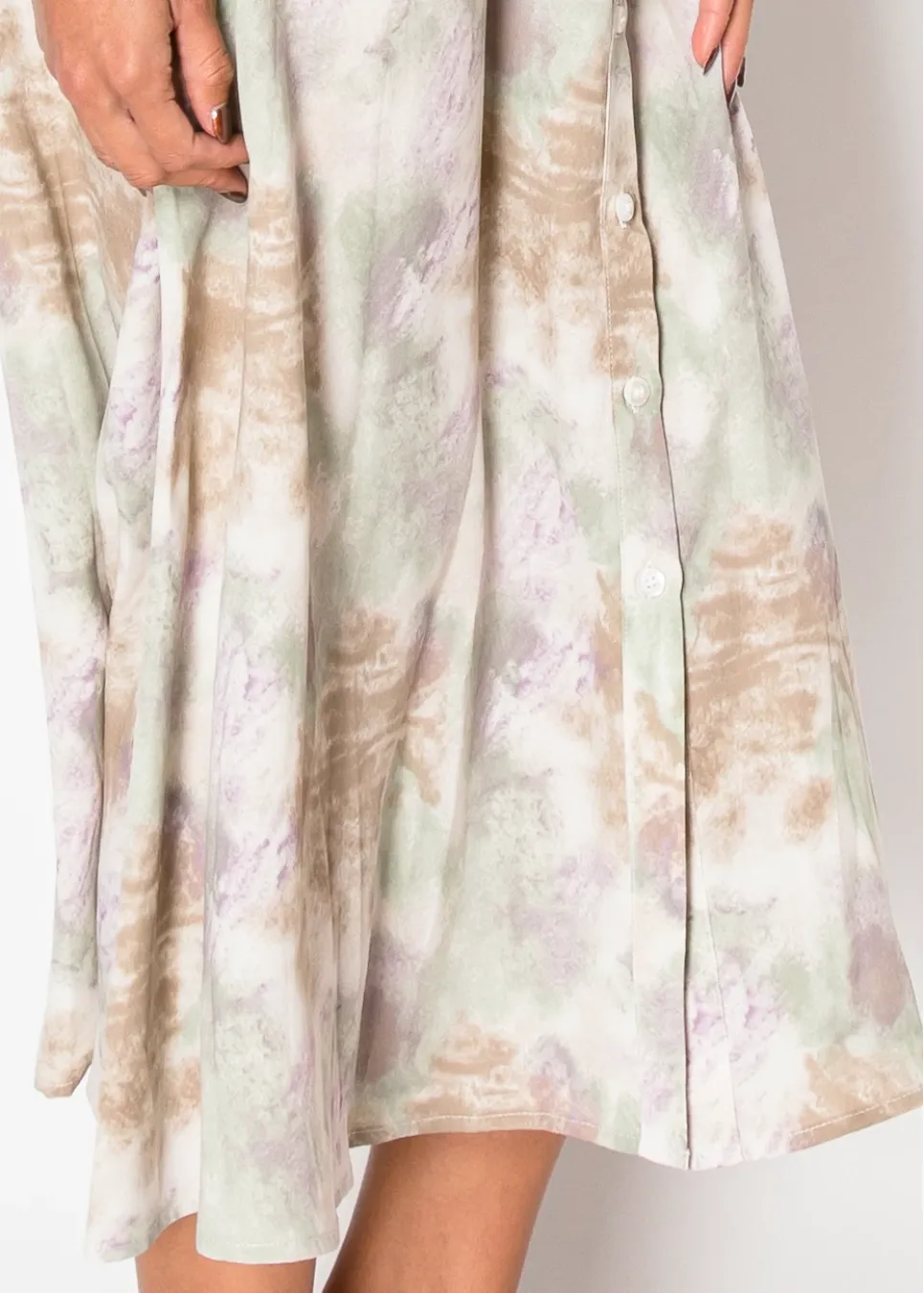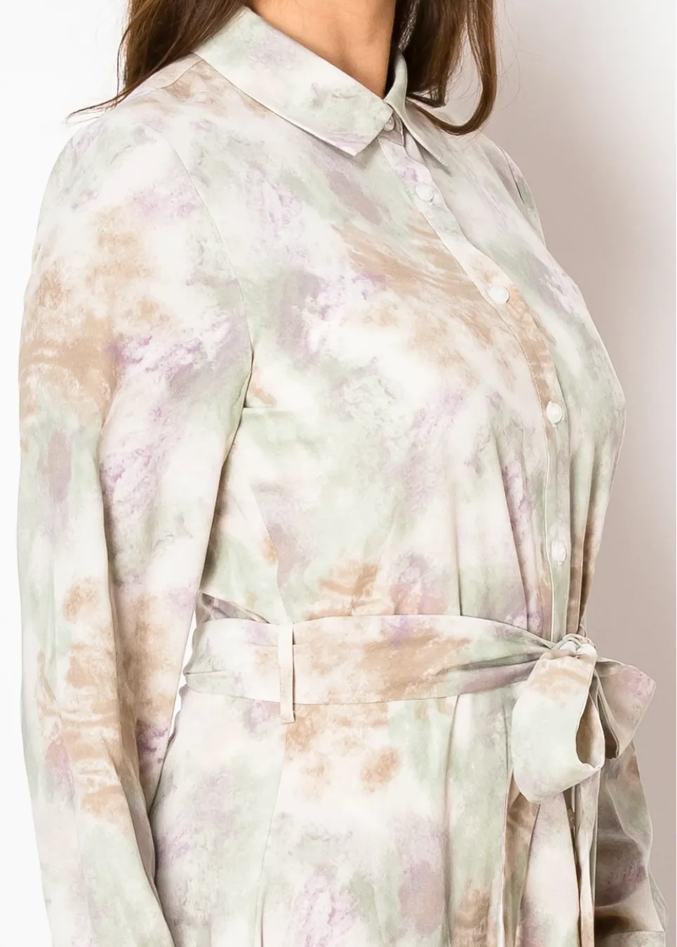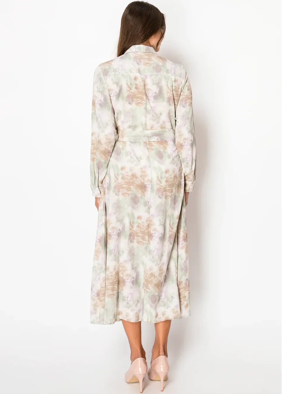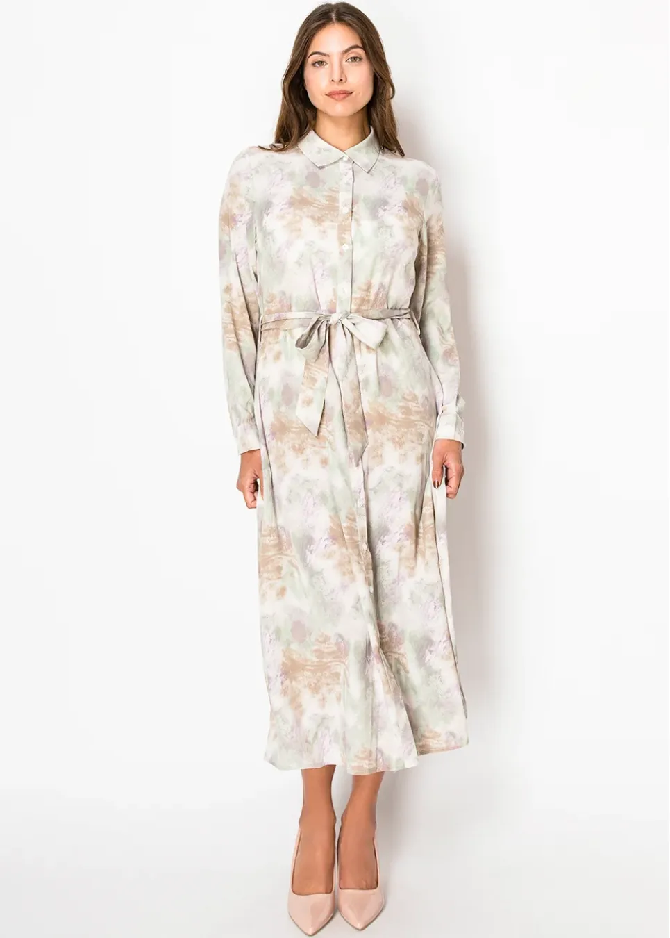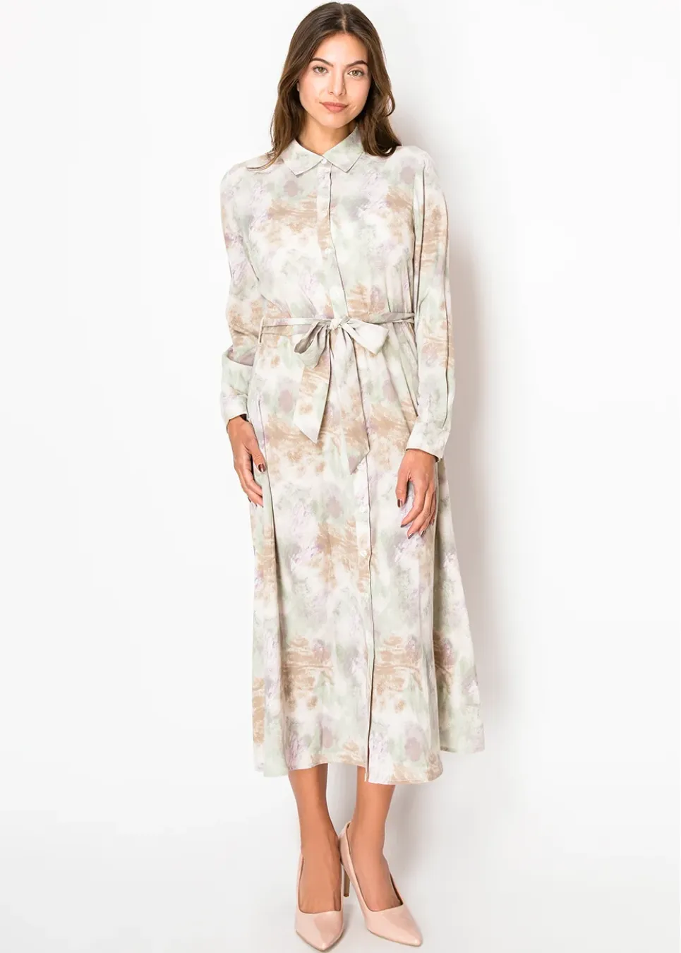 Soft green, gentle purple, and just a hint of something special. The print has that effortless, organic feel—like it belongs in a painting. The waist tie adds a flattering touch, while the button-down front keeps things classic. Whether you’re dressing up or keeping it casual, this one just works.