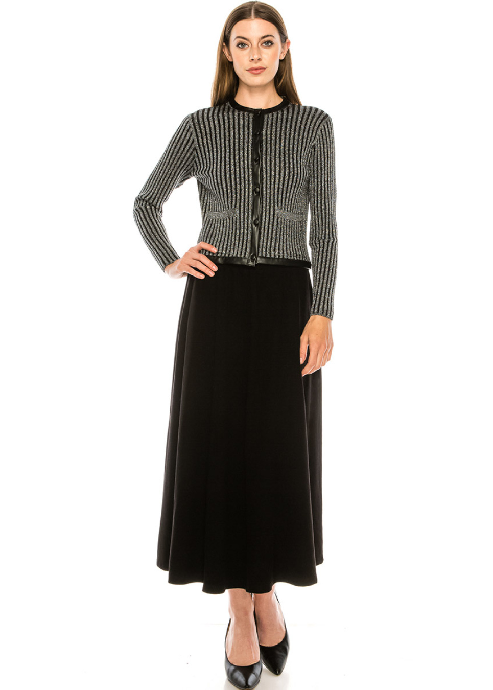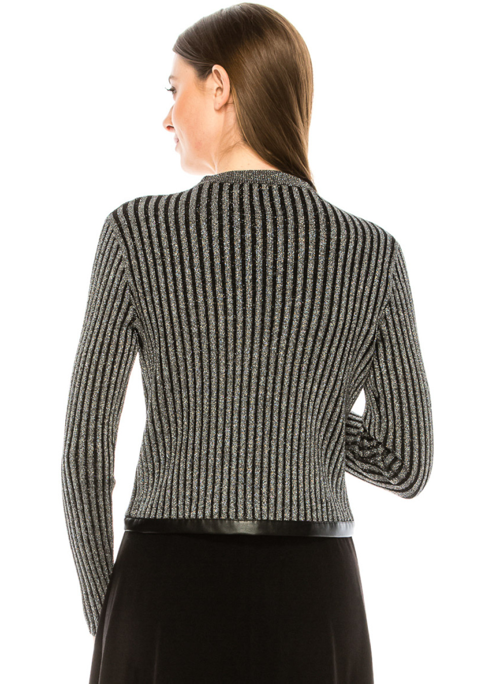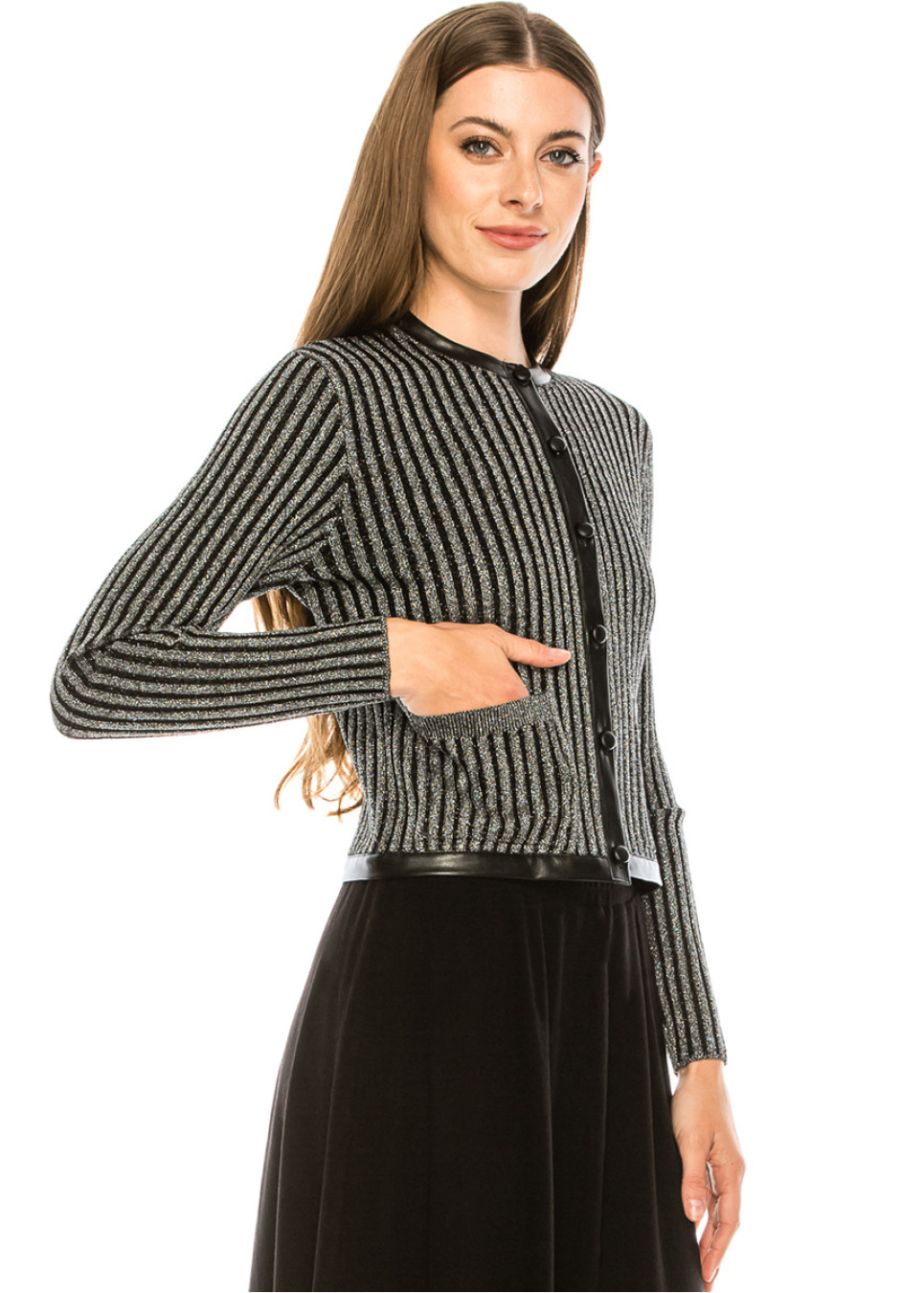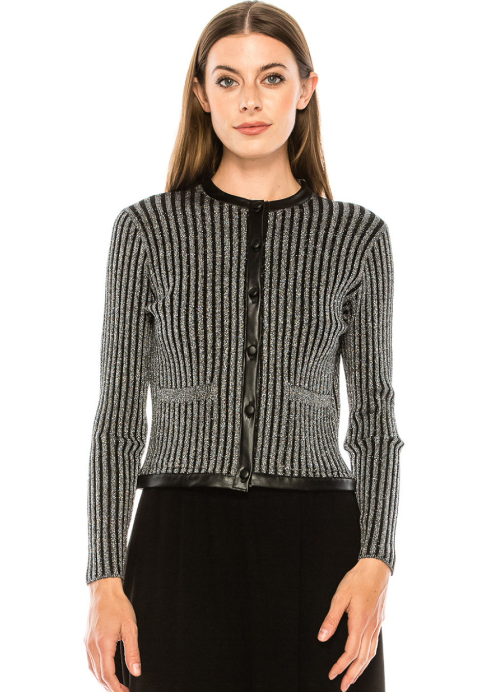 Leather trim lurex cardigan in silver
