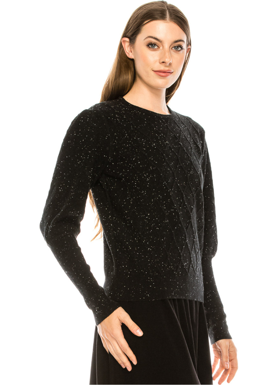Crafted in classy honeycomb knit, the sweater's design is spiced up with sequin decor. This item is your perfect choice if you want to shine every day and still feel comfy.