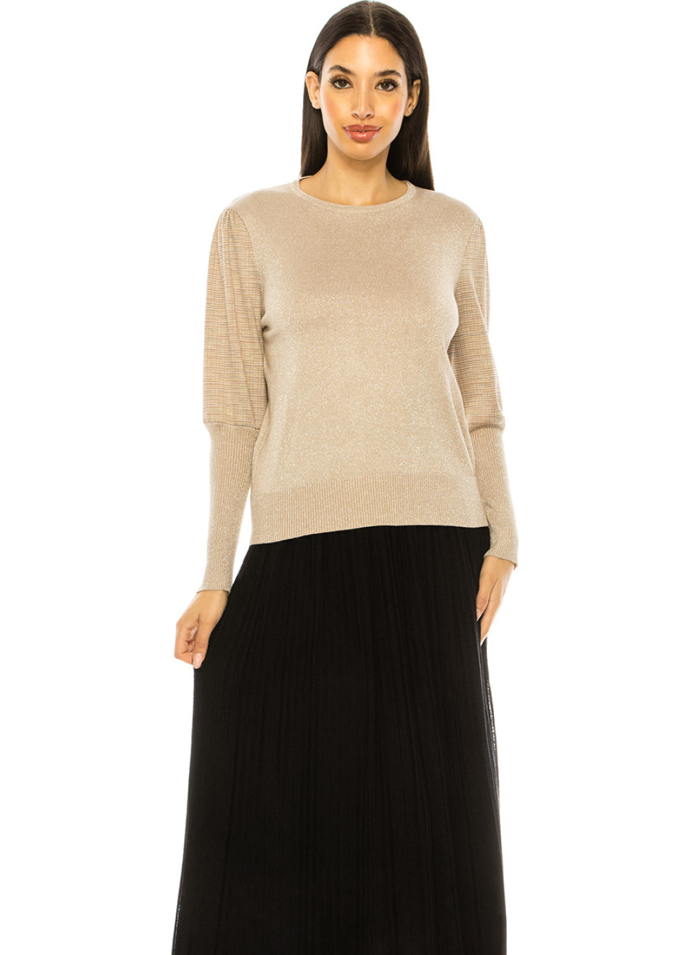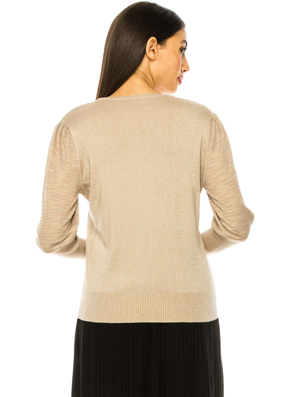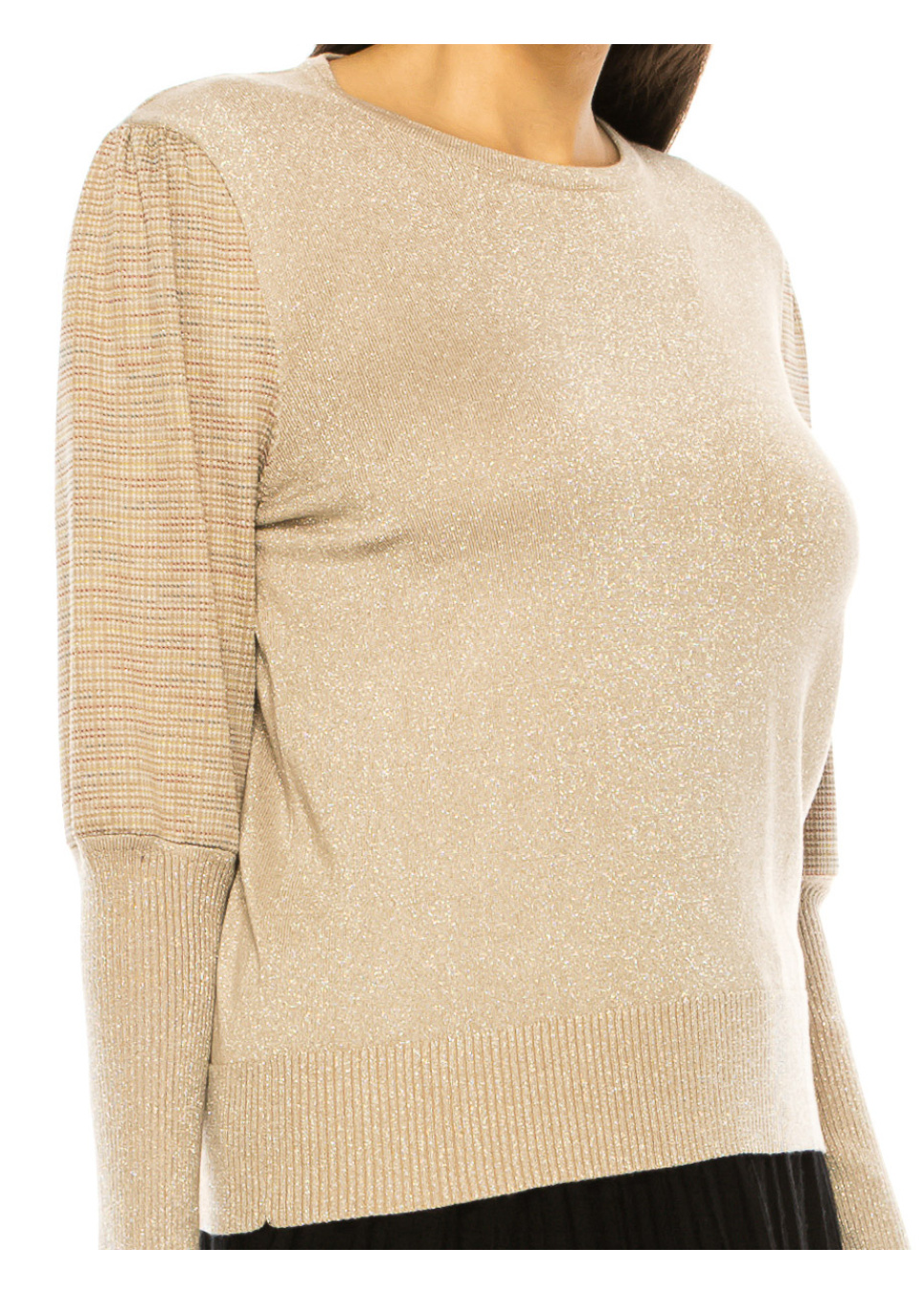 Sand Beige Sweater with Lurex Stripe Sleeves