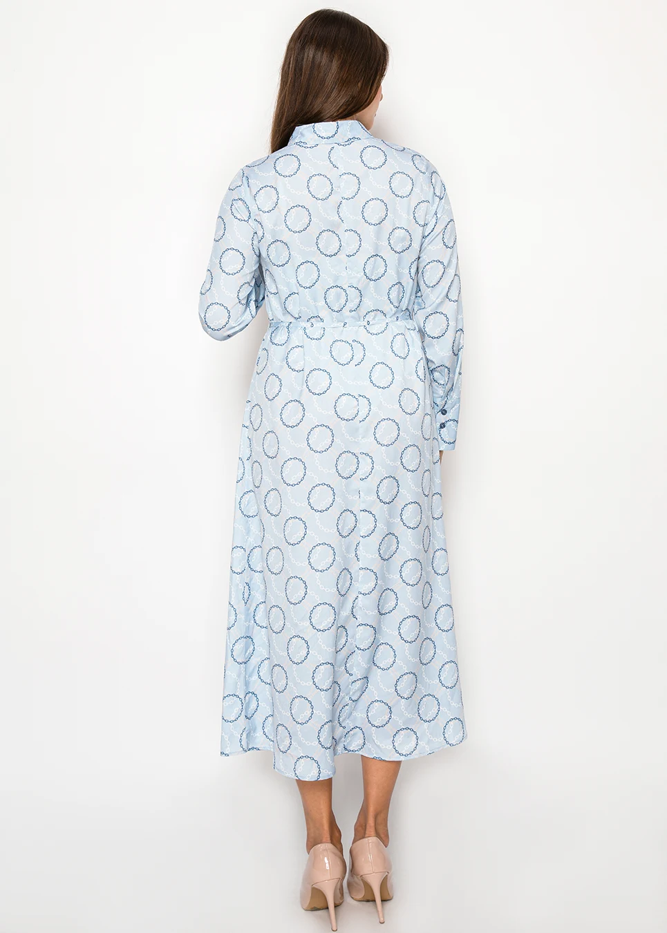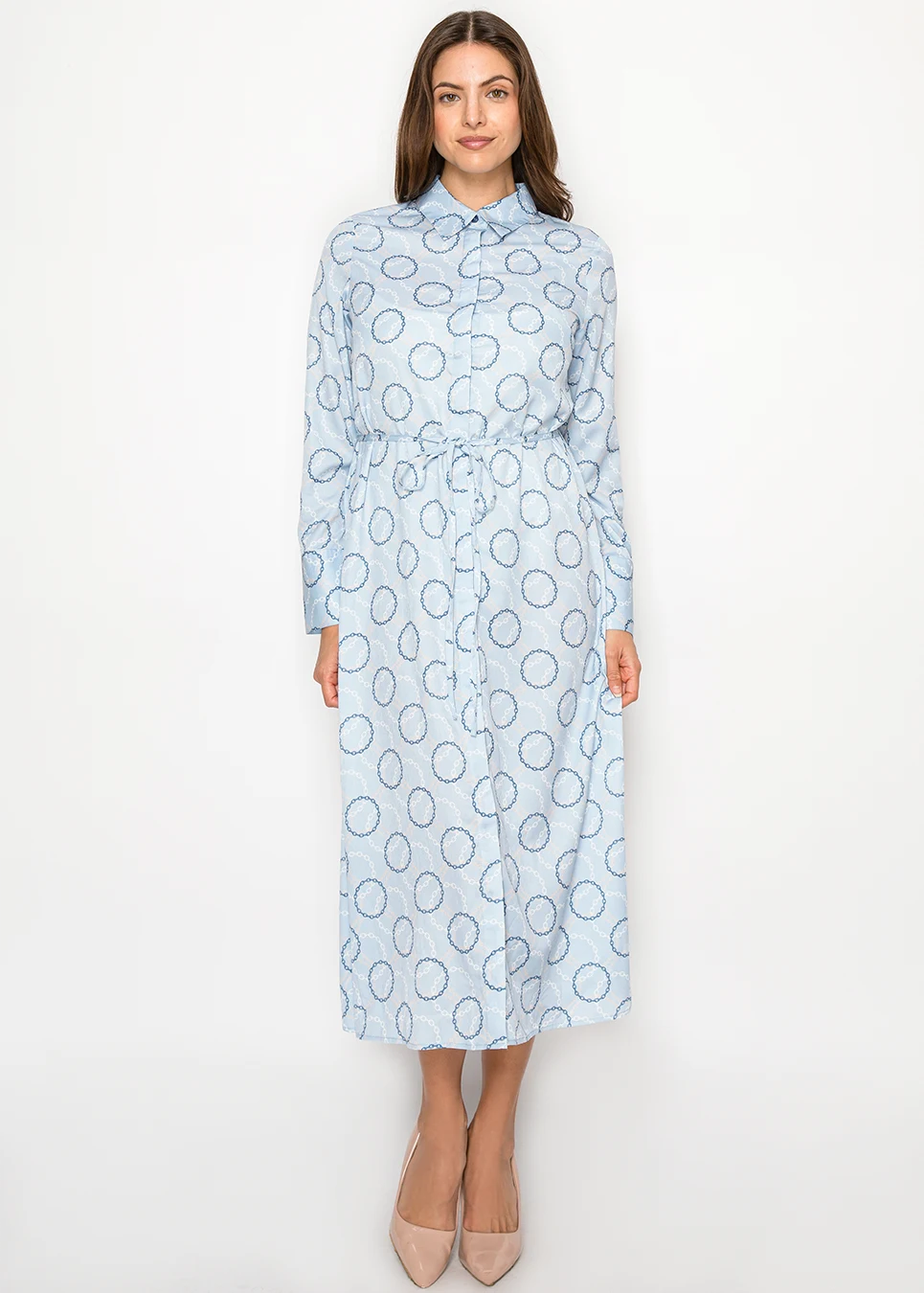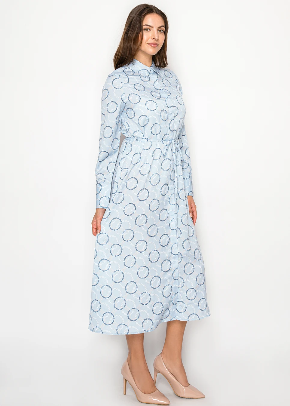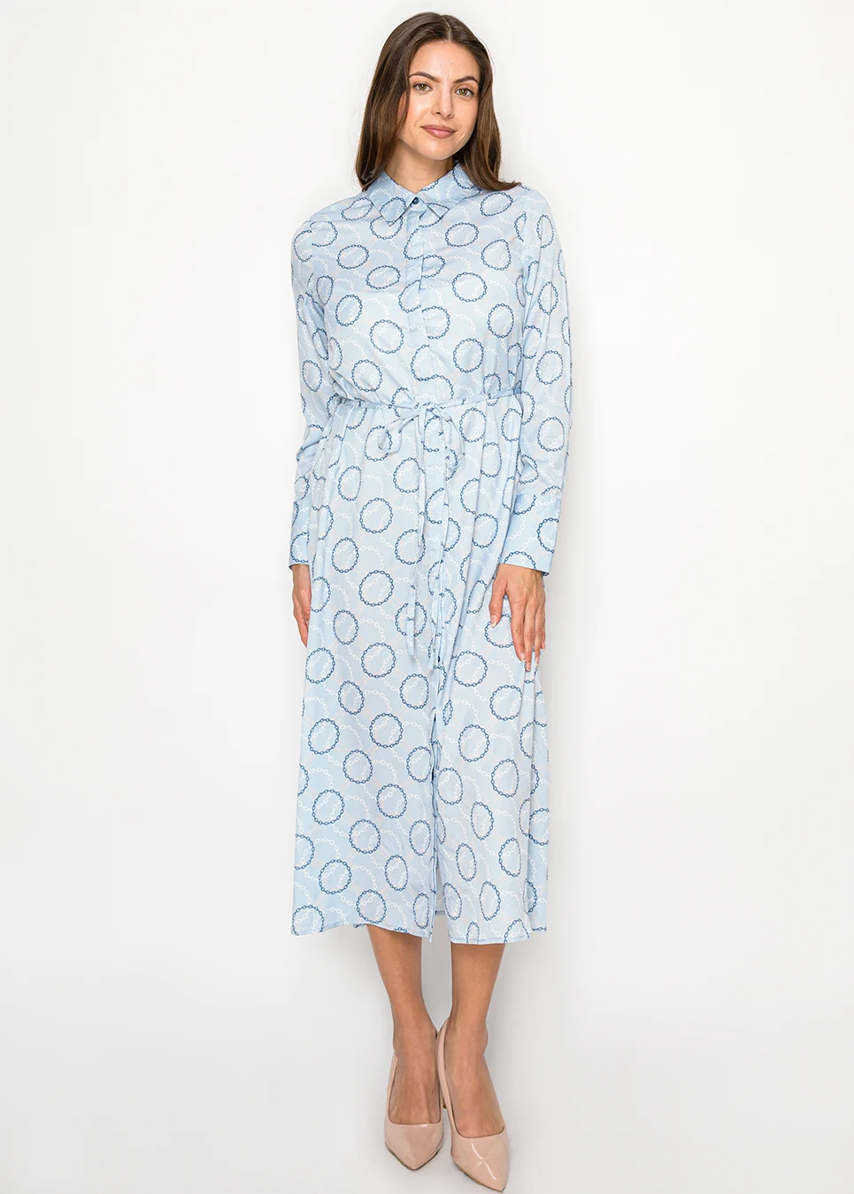 Light Blue Collared Dress with Chain Print