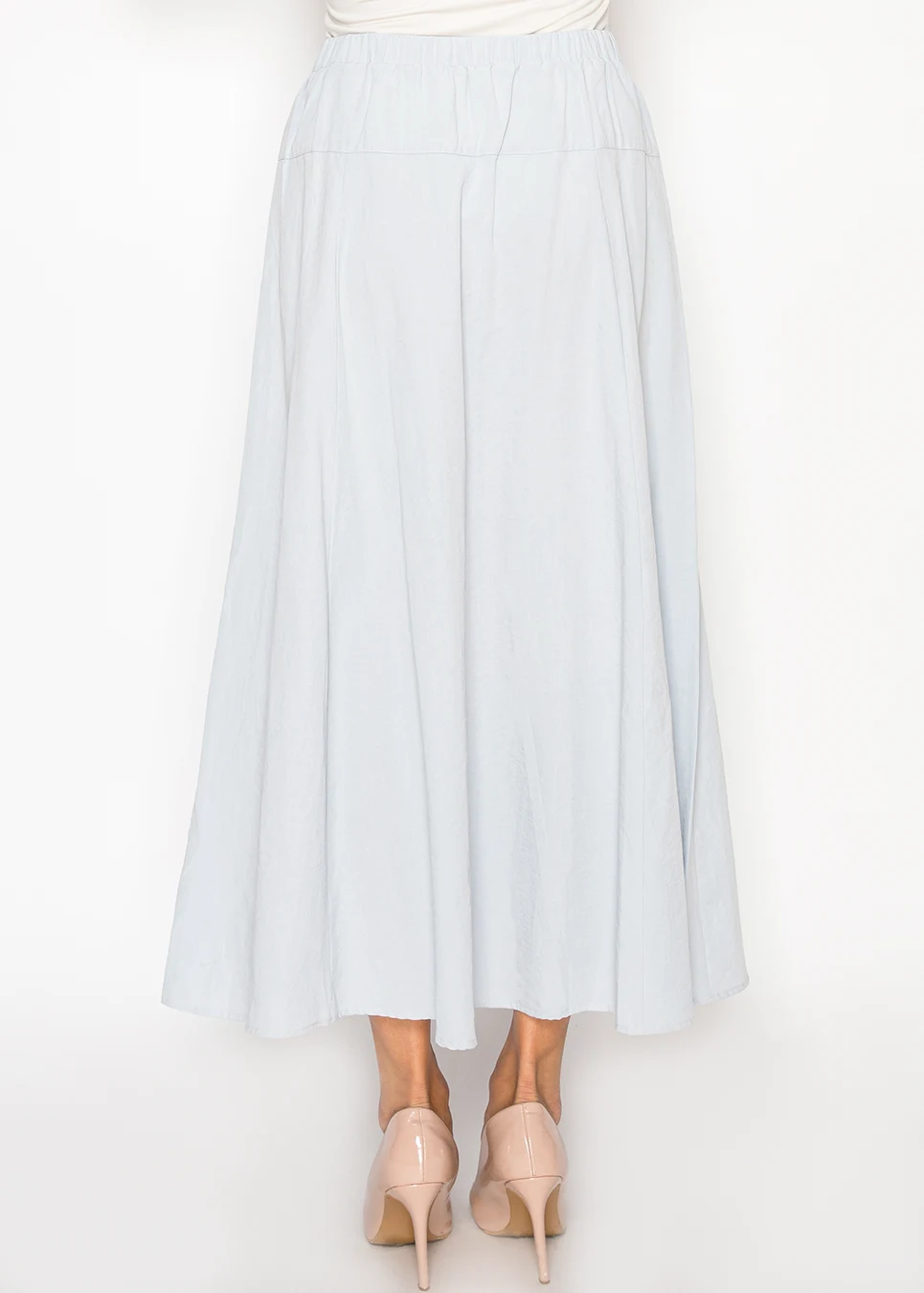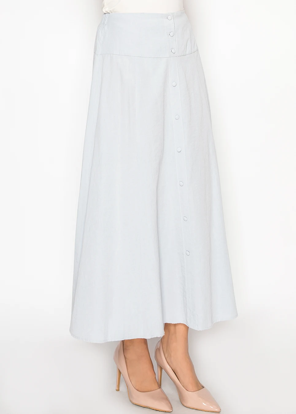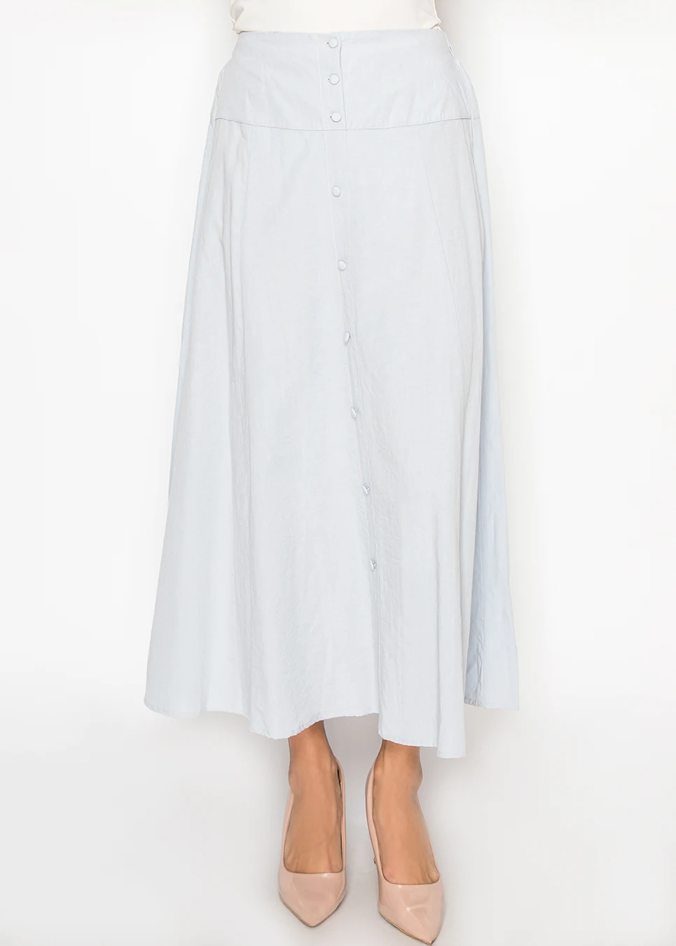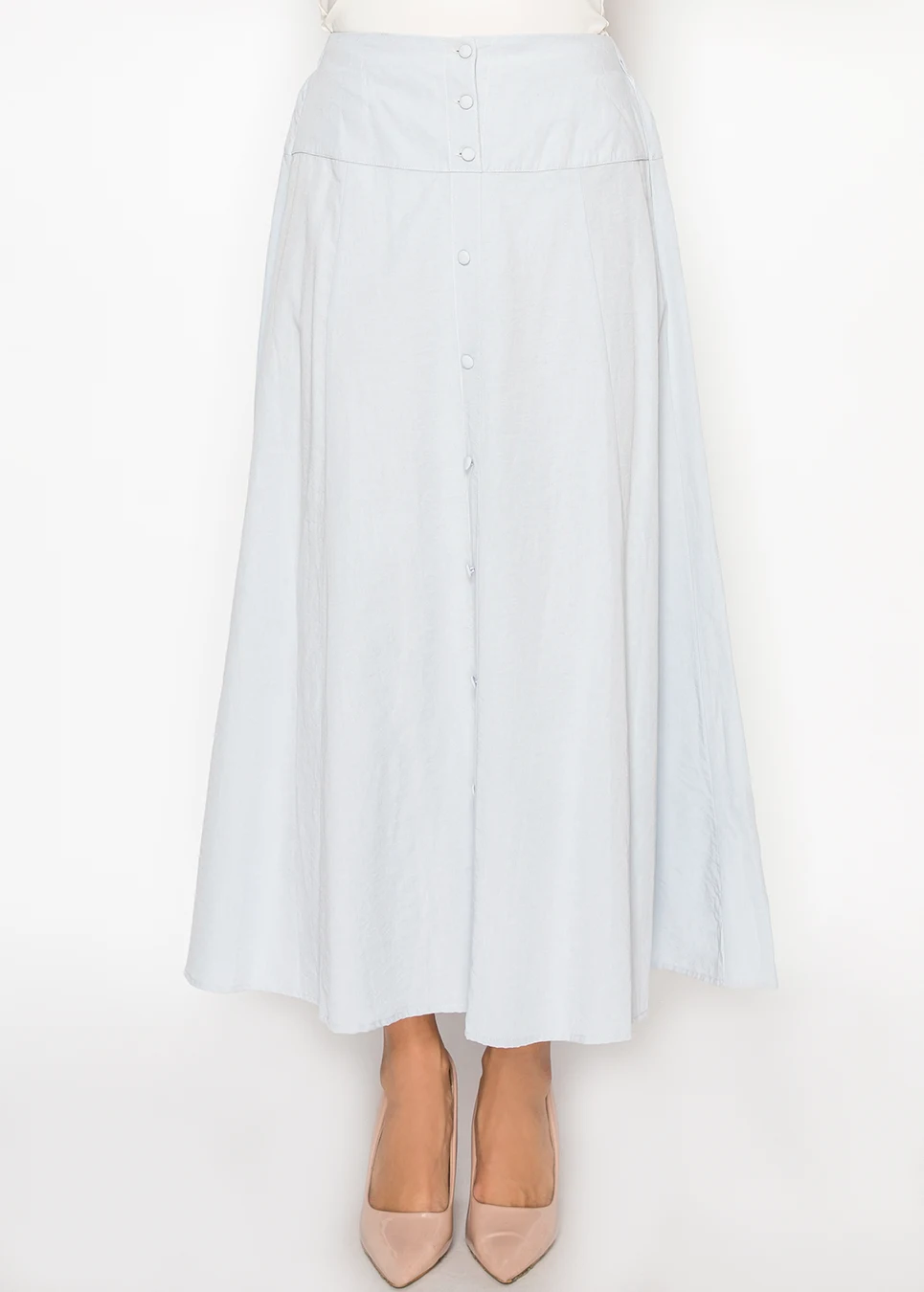 Light Blue Midi Skirt with Button Detail