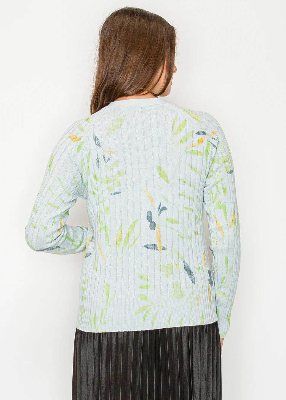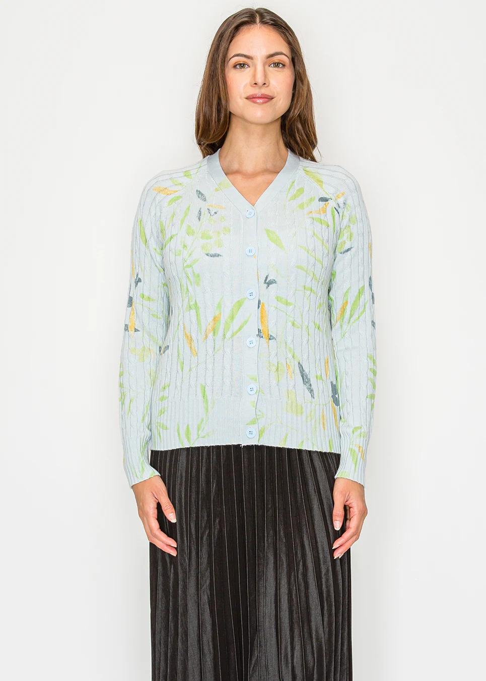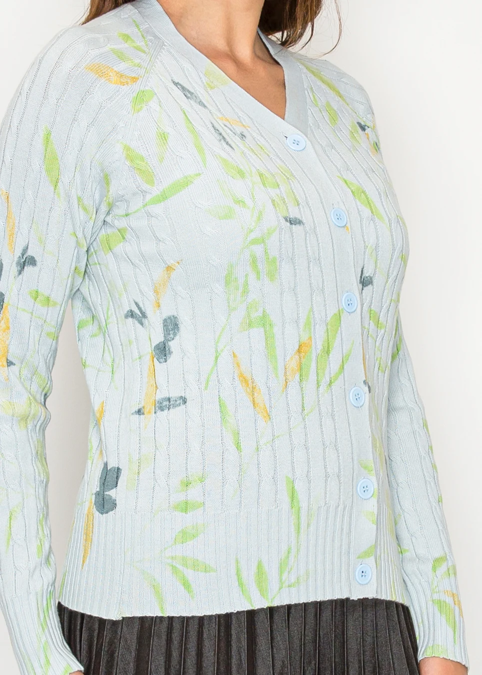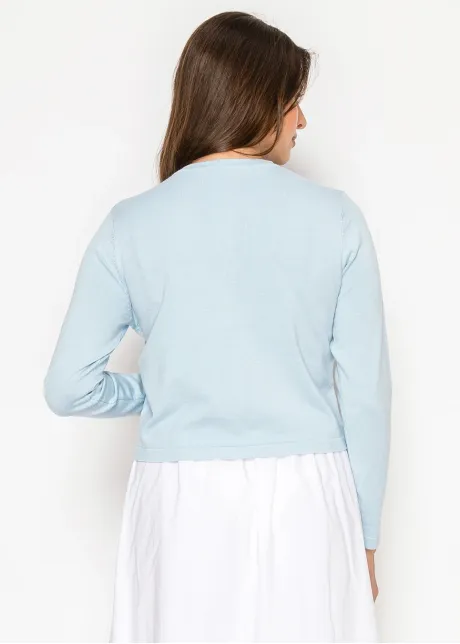 Light Blue V-Neck Floral Knit Cardigan