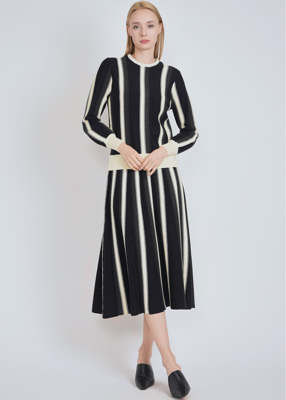 Linear Contrast Midi Skirt