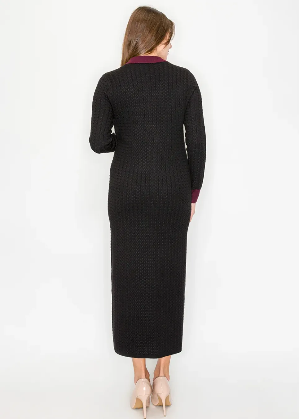 Long Cable Knit Dress with Contrast Trim