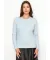 Under a white cardigan the blue reads soft and fresh. Under a blazer it looks polished. On its own with a midi skirt it's completely at ease. The ribbed cotton-spandex blend keeps the fit consistent wash after wash. Three henley buttons, long sleeves, fitted silhouette. One top, a lot of uses.