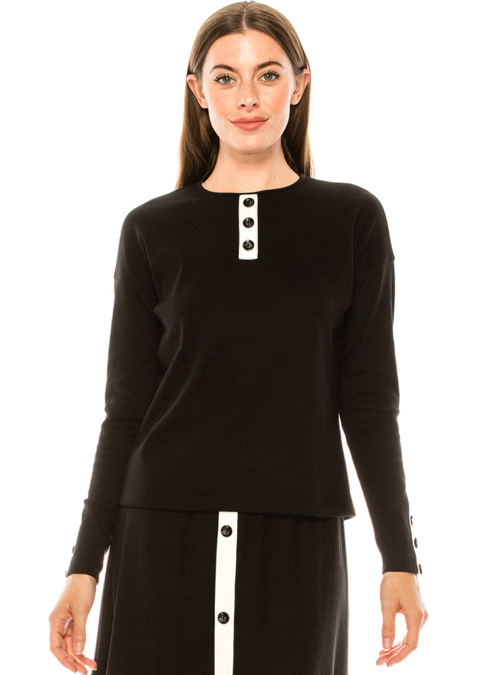 Black & Striped Long Sleeve Henley