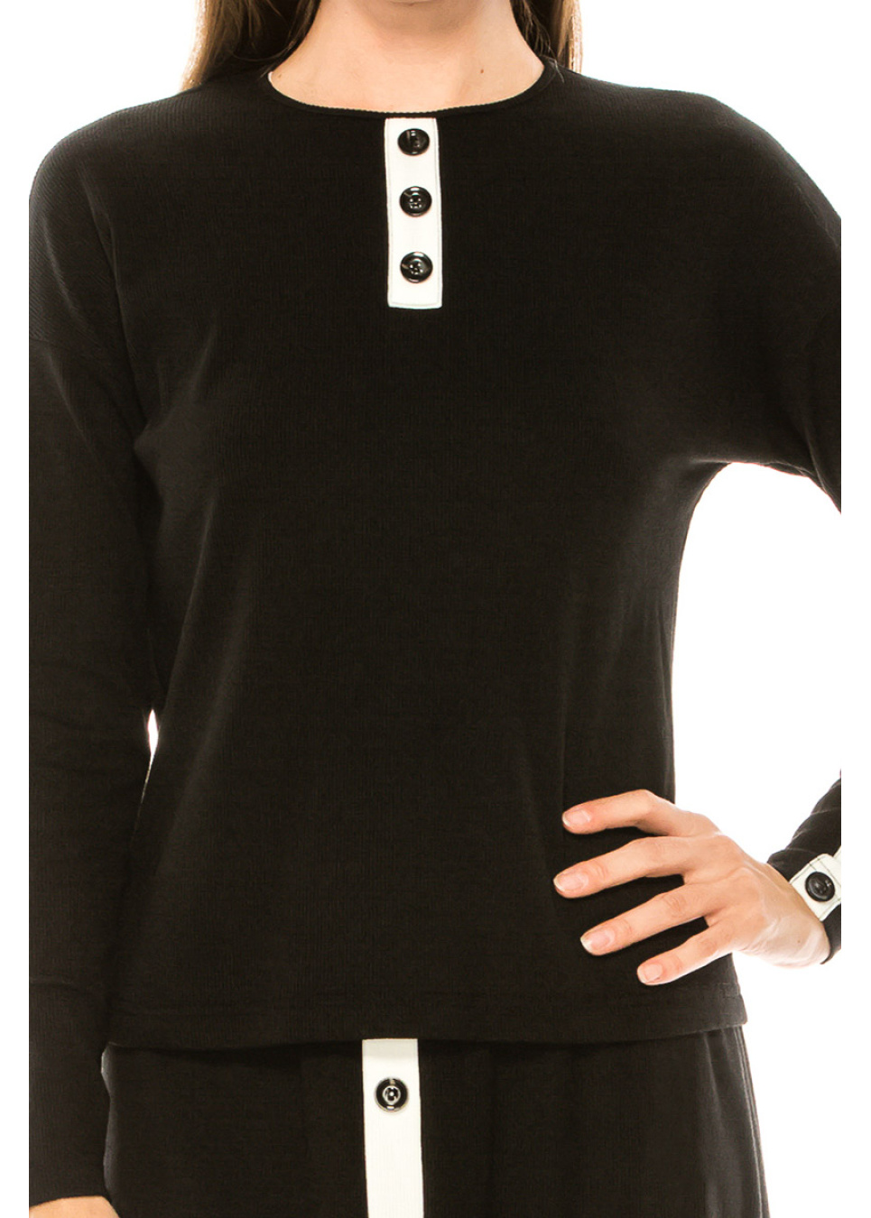 Long sleeve T-shirt with button decor