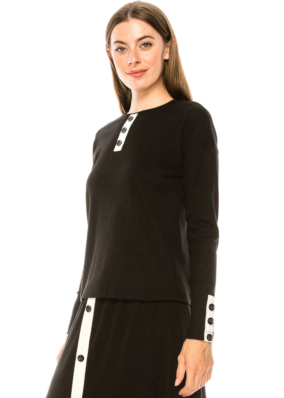 Soft Black Tee with Side Button Details